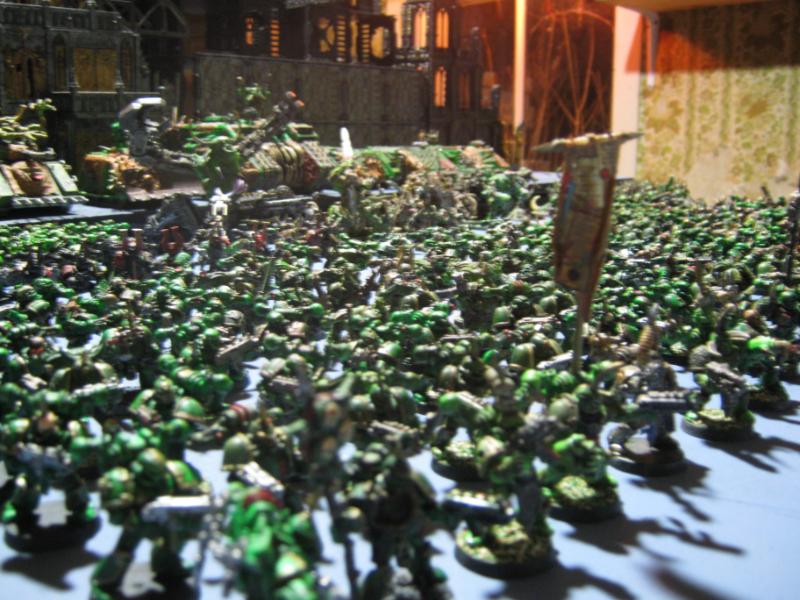 @ Courtsloth- 3rd Edition? You insult me, sir! This is 2nd Edition all the way! Just kidding around. No, it really is 2nd ed, but I appreciate the compliment.  I started this in 1997 as a small detachment to a much larger Black Crusade force. I have Night Lords, World Eaters, Iron Warriors, Black Legion, and Alpha Legion from my original force, and I have a start on a Word Bearers HQ and Troops that have been patiently waiting for me to stop wasting time with the misguided monotheistic Death Guard and return to embrace the true Glory of Chaos Undivided. I figure if they can wait 10,000 years for Lorgar to return, they can wait for me to finish a few other projects first.