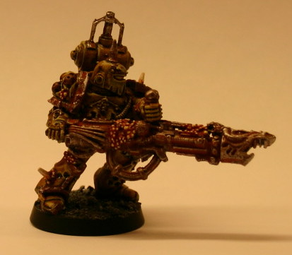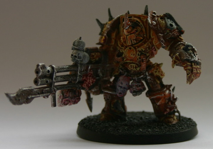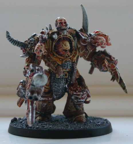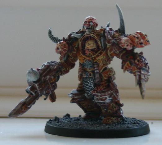 So I'm battling on Saturday - first play with the new Chaos codex - 2500pts against Orks who I rarely prevail against.  Anyway, I've just finished this bad boy who will hopefully be opening a big can of whoopass on the day!  I'm also gonna try throwing a couple of cuddly chaos spawn into the fray (as well as some cultists) as cannon fodder to soak things up a bit whilst I use heavy support to open up all the trucks in an attempt to empty out contents and give them a good pounding before the inevitable close combat!