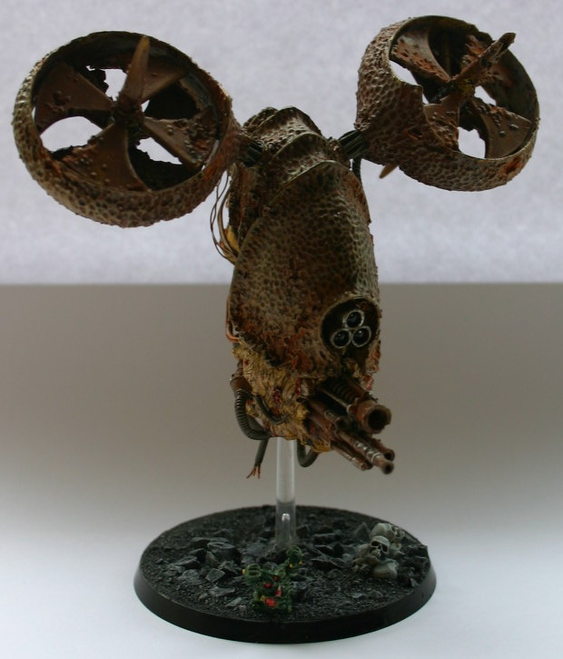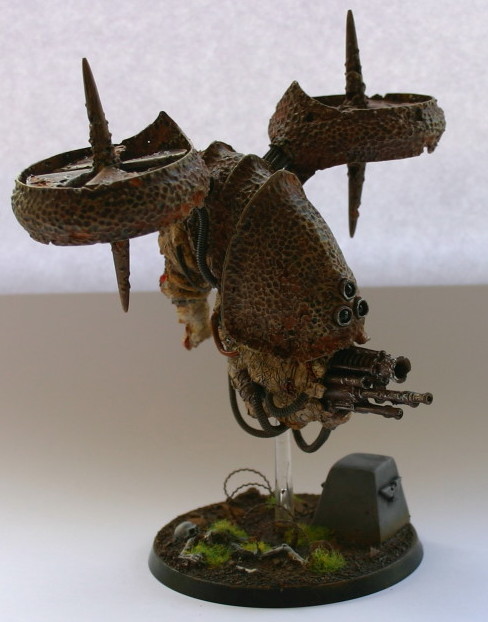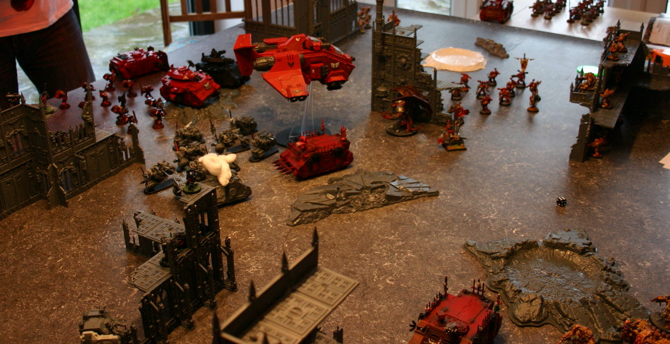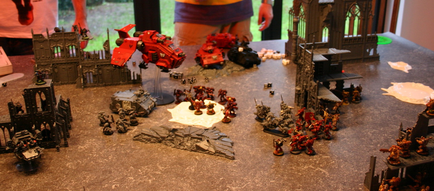 The storm raven took out quite a few troops and a dreadnought (helbrute). It had quite a presence on the table, not sure on the points value but as I hadn't anticipated any fliers I hadn't taken any skyfire options, and my flying Daemon prince got wiped out early on so I couldn't vector strike it either. I think having flyers is going to be a necessity in the future - I used my heldrake in the last game to good effect (think I may get another). It adds a new dimension to the game (GW obviously want to sell lots of flyers) which I like - I just hope they don't start to dominate the game.
