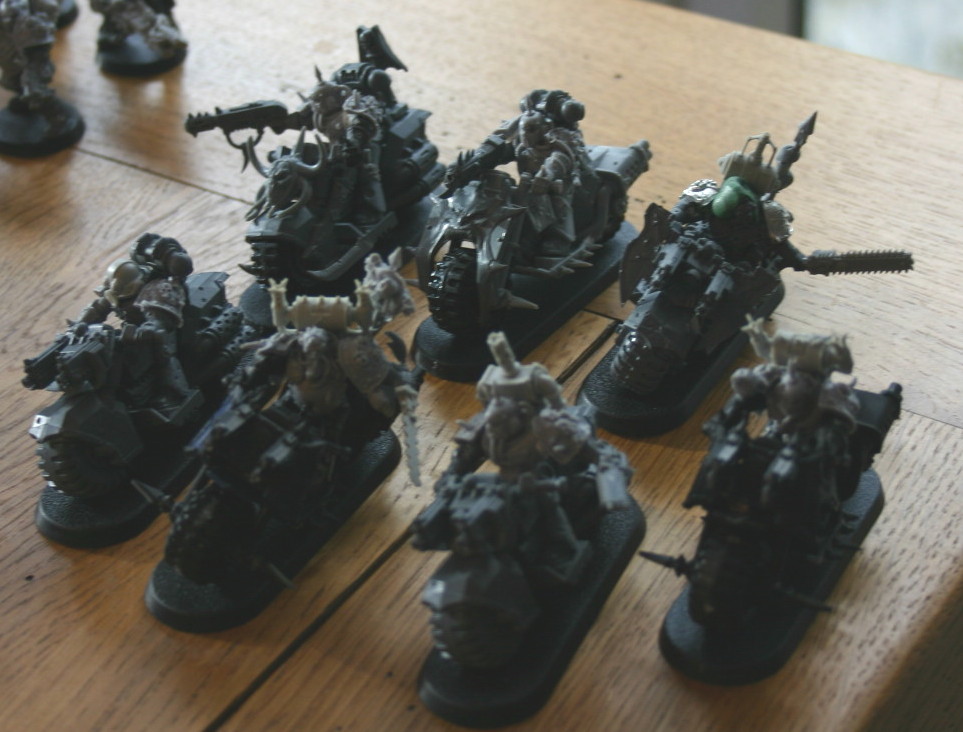 Just a quick update, as I said before I've started building the Nurgle side of my army, raptors, havocs and bikes. Here's the first few. The non GW bits are very cool bits from Maxmini (on e-bay).