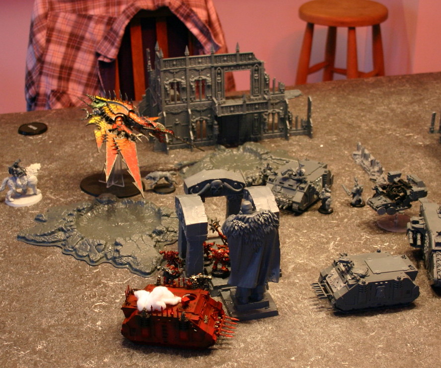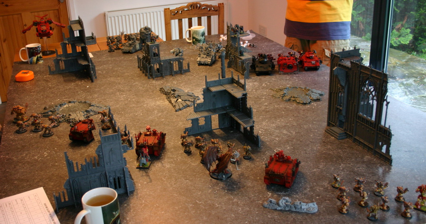 Looks like a lot of fun monkeyh... and your chaos forces are looking just great! I usually shy away from really big battles as I find running that many troops makes me prone to making dumb mistakes. Terrific when a game that size comes off nicely though.