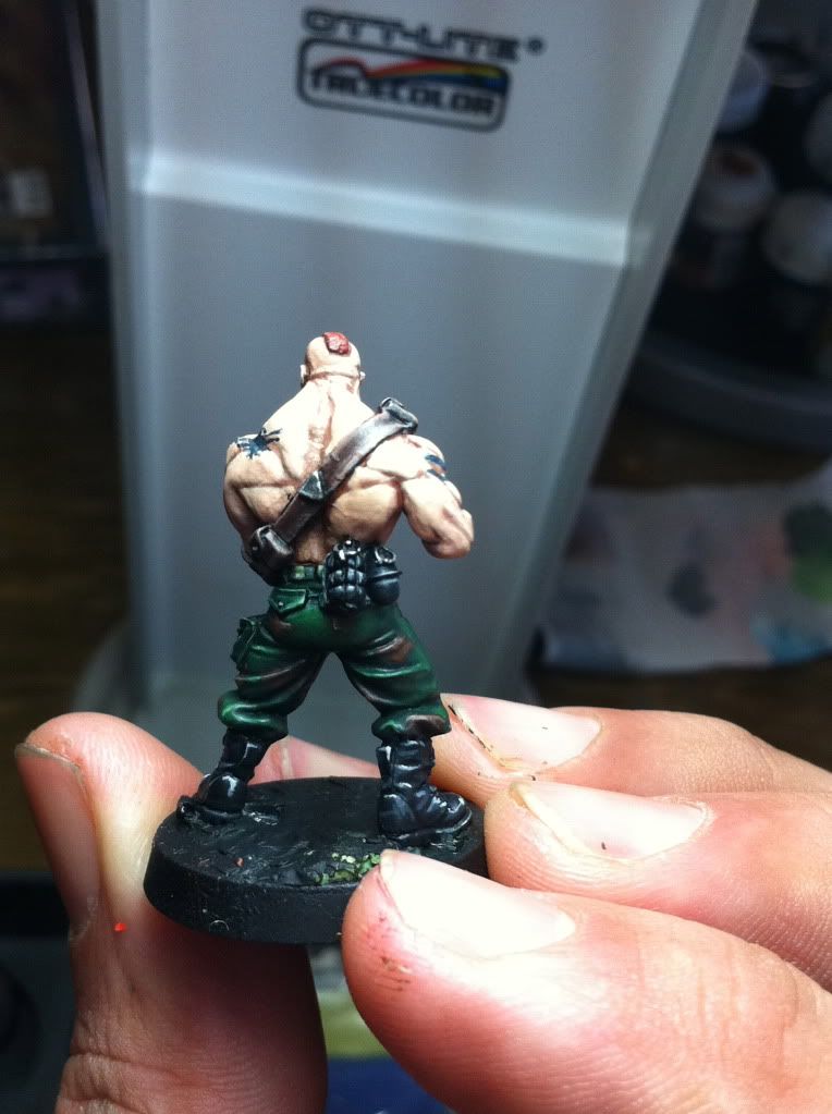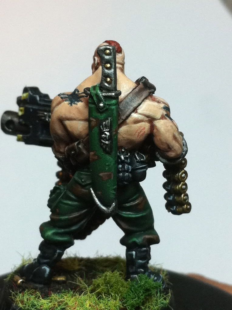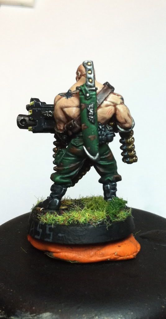 also i have to ask... that torso of the grenadelauncher guy... did you just paint on those abbs on him? very cool! and about this very conversion i have to say something else...: some peeps might have used a standard cadian body with a genestealer head... i say... this would have been dumb... a guy with a head as big as this never gets this on again...so you choice for body was way clever! sound composition all over!
