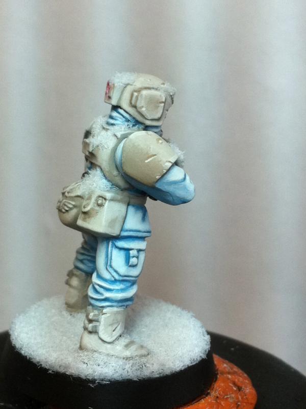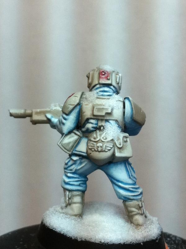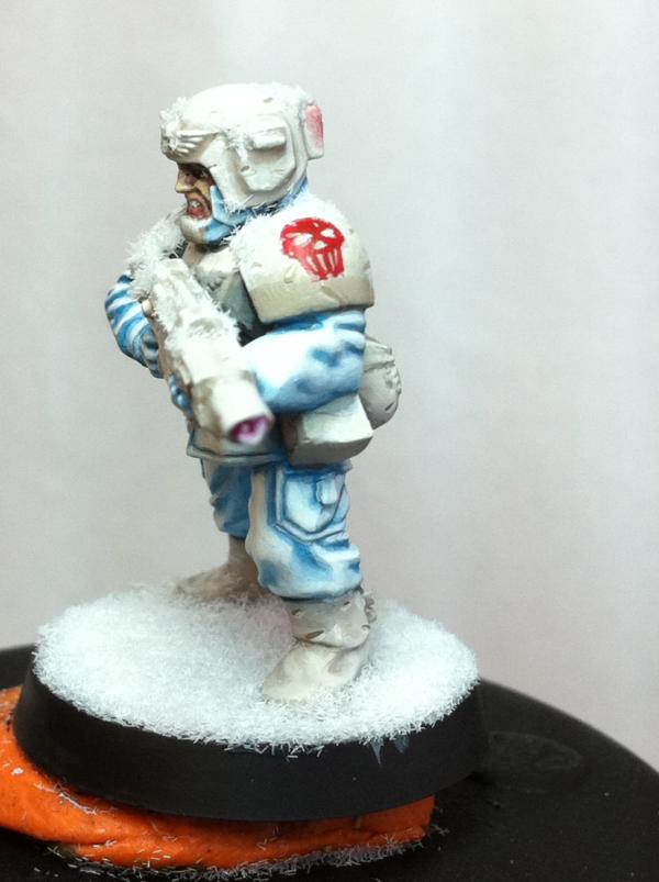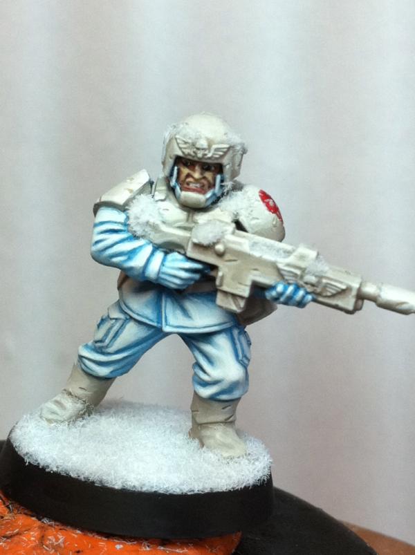 i dont want to add a stone to the base. The lack of anything there, in my mind, envokes the imagination. A lone guard wandering in the middle of a blizzard/ice plateau. There are no rocks...However, i will try the next mix and post an update here. Im not posting to the 40k comp thread until hes totally done Thanks for your input guys, its invaluable!