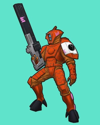Im really likeing the red glowing effects on the back of the helm, and in the barrel of the lasgun nice work