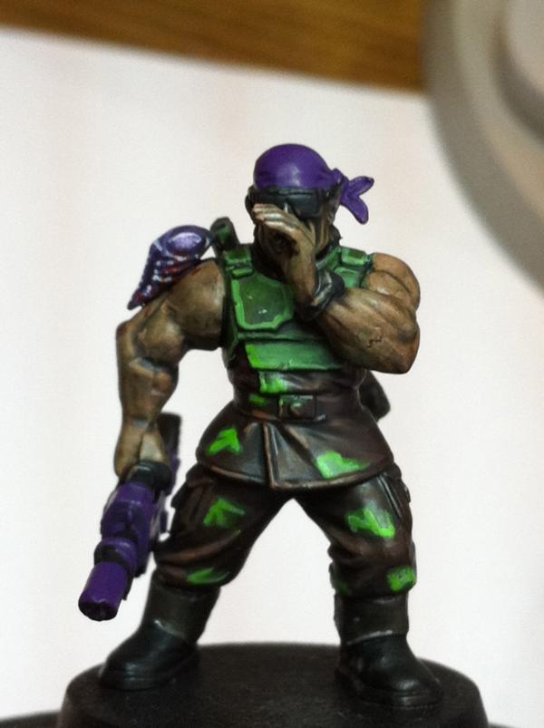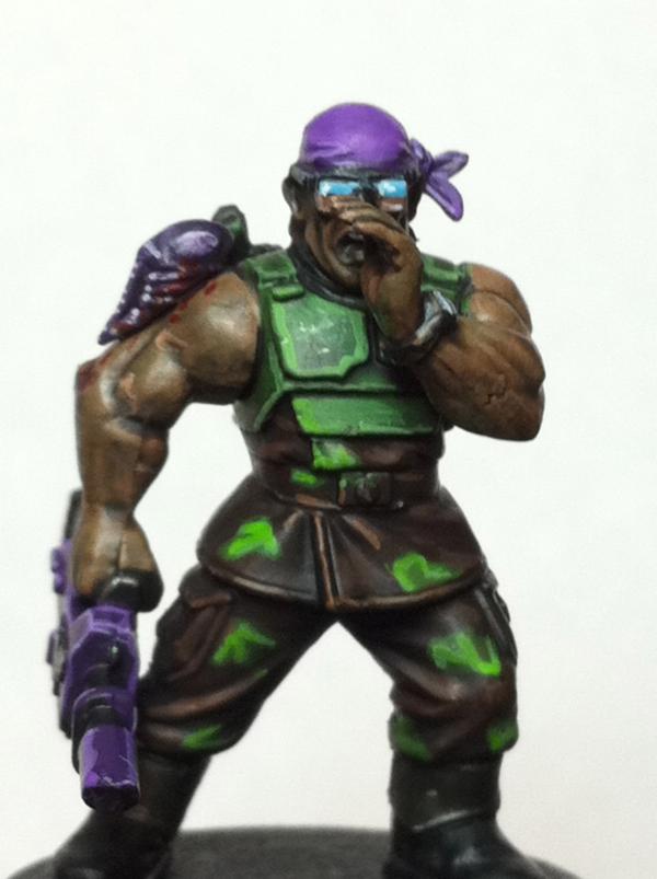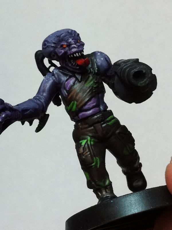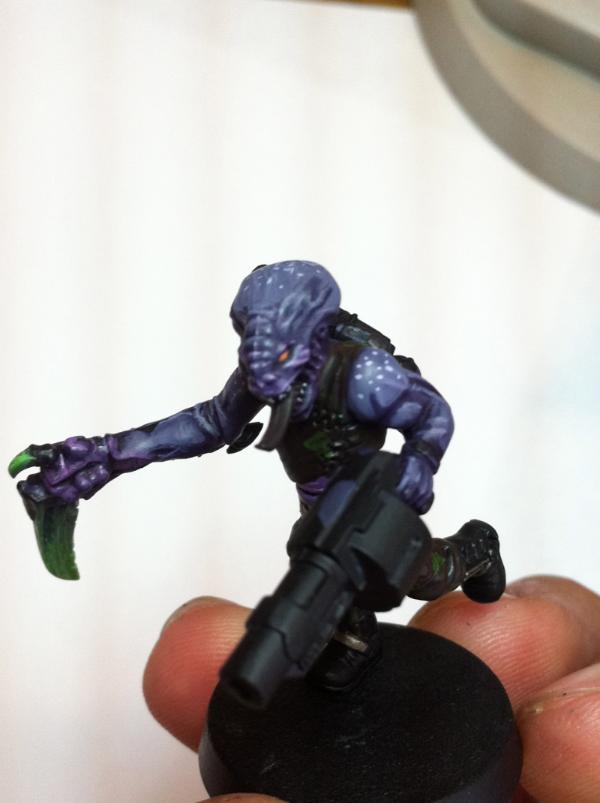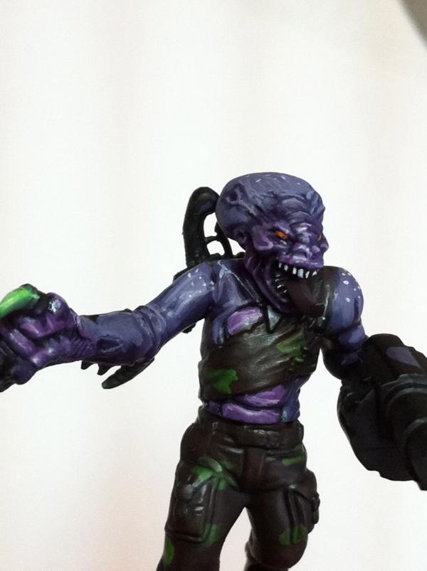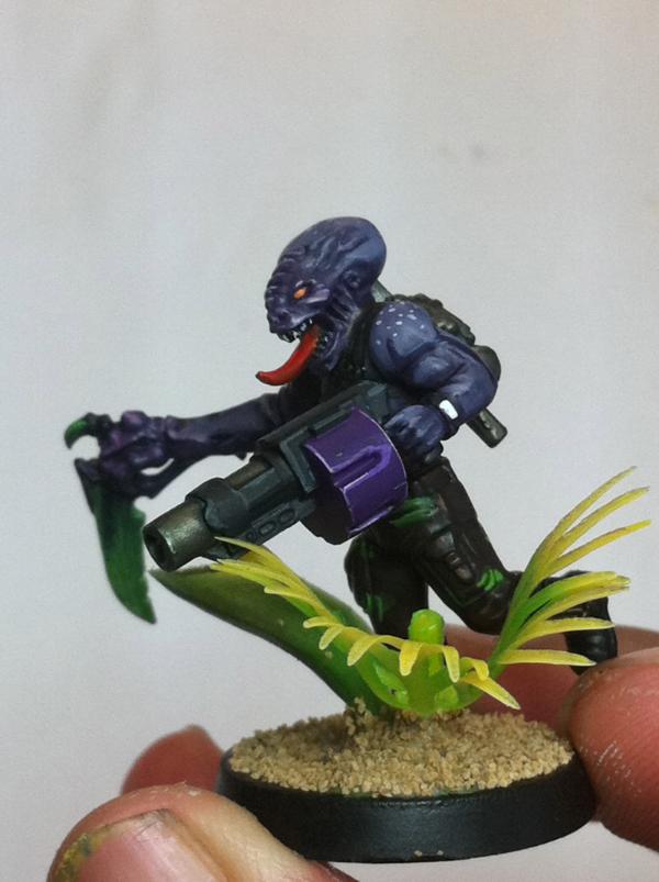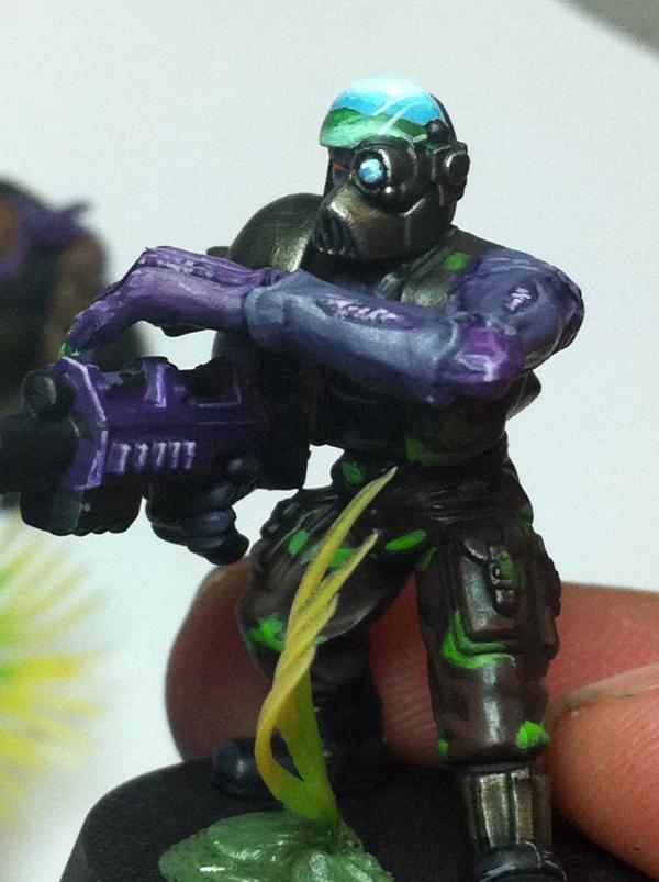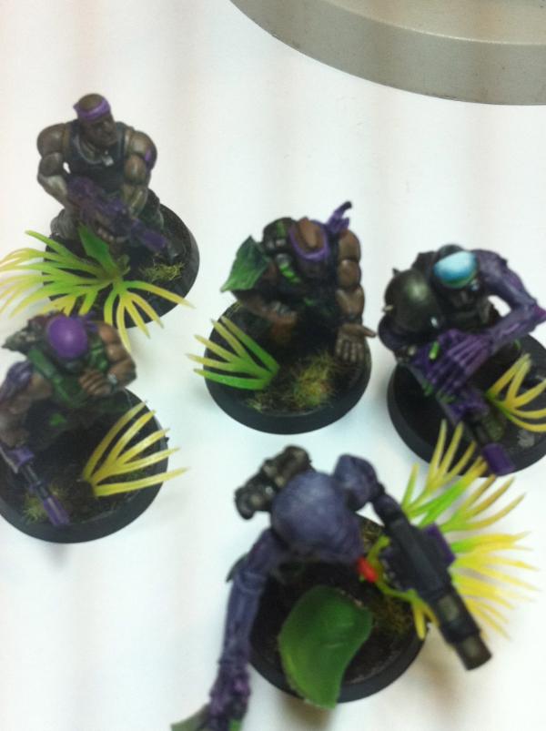 The look great. The green and purple lwork very well together. They lend themselves to a night stalker theme. The difference between the skin on the sarge and the solid color of the bandanna and gun on the trooper show the transition from human to 'nid incredibly well, I think. Very cool.