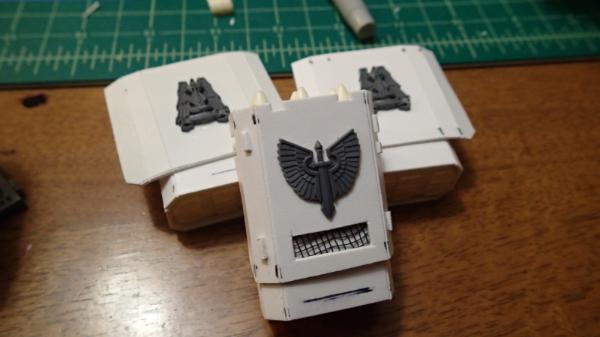 Good Call Cam! I think that's a great solution. I haven't filled and patched the Droppod yet, but I wanted to see how it looked so I did some of the Whirlwind turrets and the Stormwolf (which I had realized that I hadn't shown any progress on for a while). Very pleased.