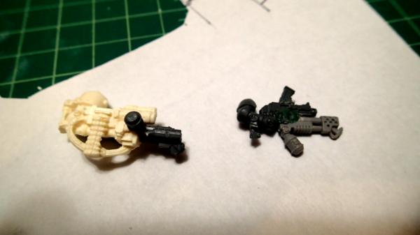 And whlie I was at it, I mocked up a combi-flamer for my SW buddy and kombi-skorcha for my meganobs. I guess the combi-flamer is probably too big.