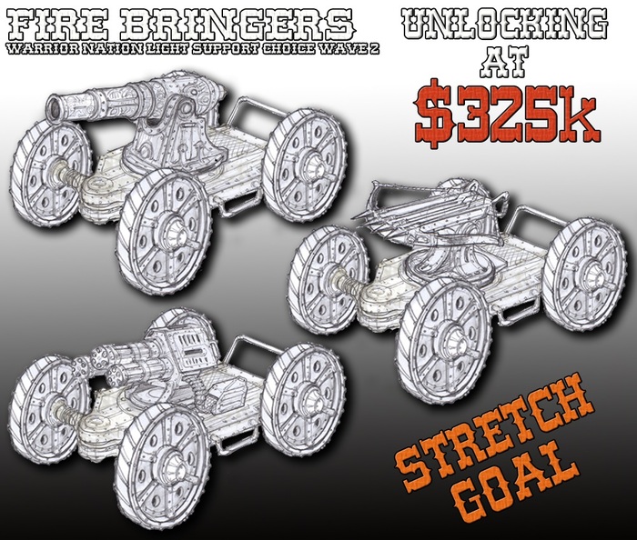 The second wave of light support vehicles have been posted. I'm not sure about the Warrior Nations LSV but I really do like the Blackjack. If it unlocks will have to go back to the drawing board on my pledge Having a hard time choosing which Hired hands to get as well, oooo choices.