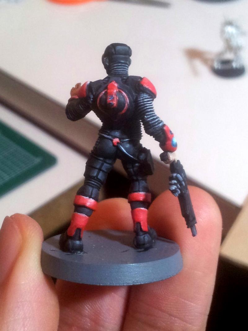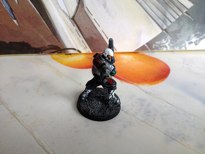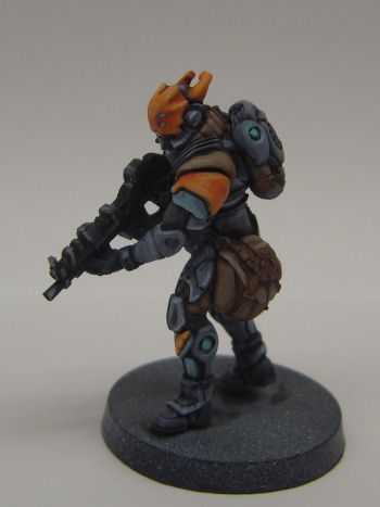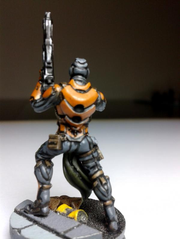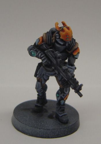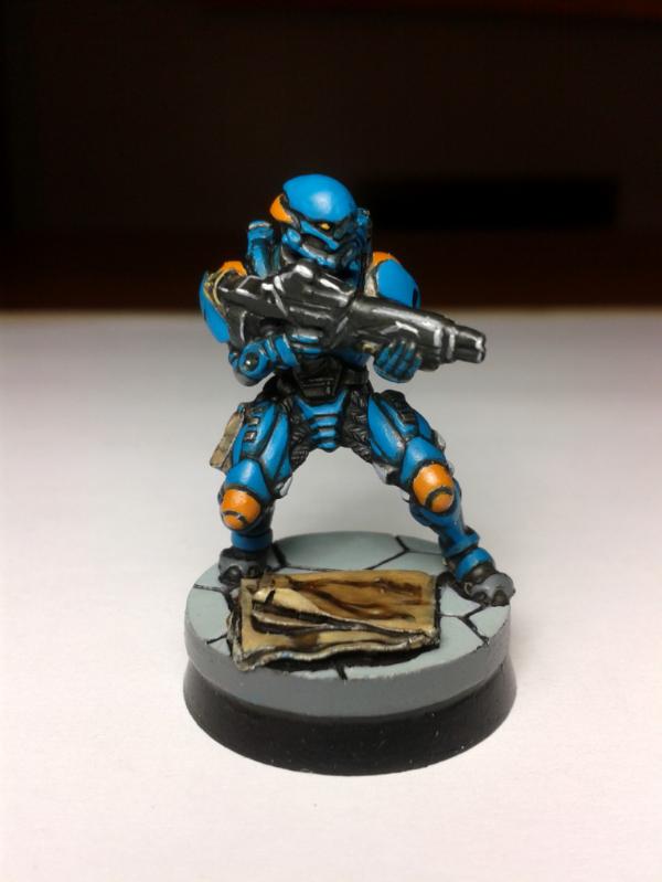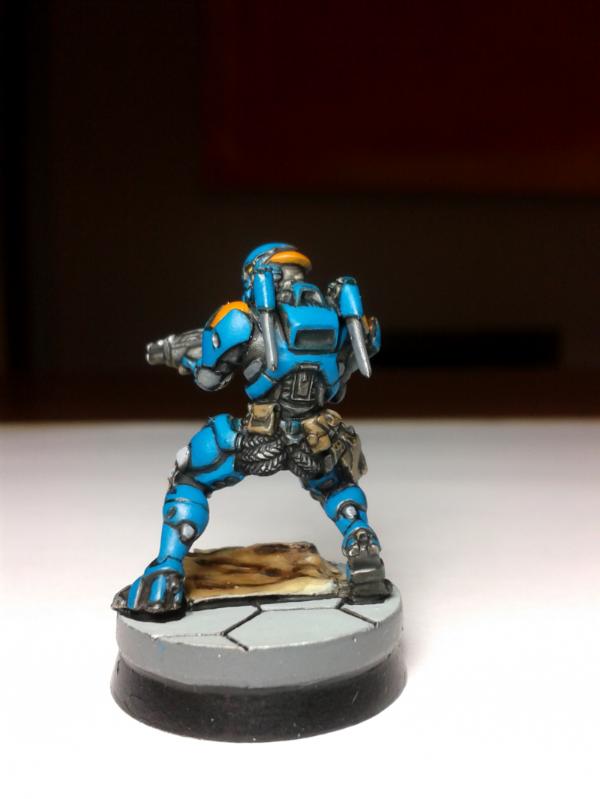 I think he's at a "good enough" place for Infinity, he looks better than a lot of my other skirmish/army infantry, but well behind the studio minis and most of you talented/driven Infinity painters