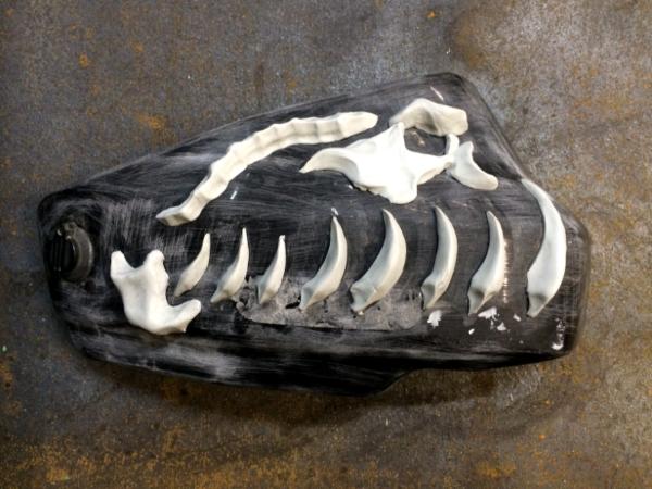That brings the jaw up to the final paint job. Up next: Horns! or, how I learned that fiberglass and Bondo kick butt together!