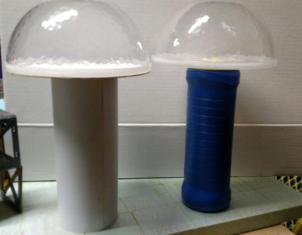 Either way, I personally would have left the joining "tunnel" between the domes as plain and painted it up in metal, just to vary the texture (as you have for the tops).