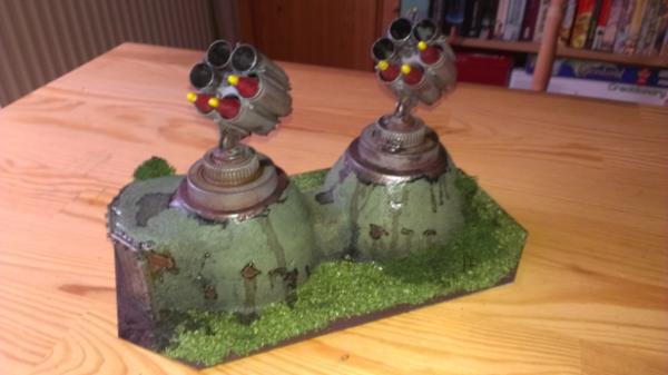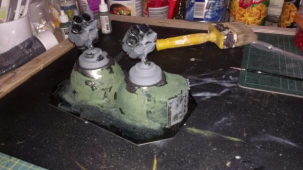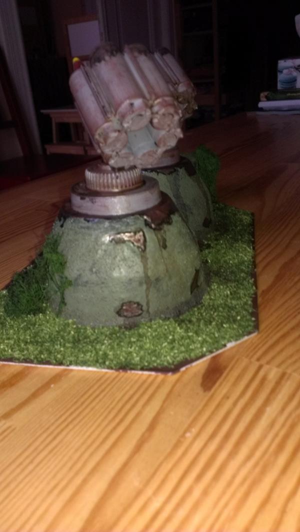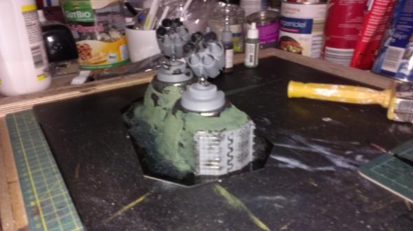 Need to sort out gubbins and prime before I can paint it and glue in all the flora though. Which base for the support pillar?