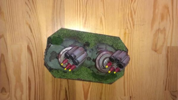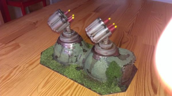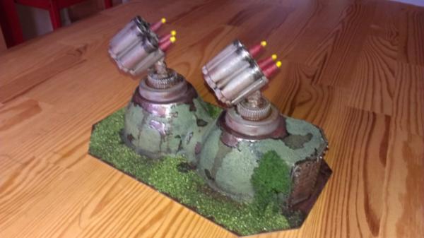 As I said, I like the missile launchers. The bottle tops for their bases are a nice way to add some texture. They could have done with some wires/cables leading from their bases to the rear of the missile tubes (even though it would be silly to have external wires for saboteurs to cut), and the plain disks below the bottle caps are unusually devoid of rivets?
