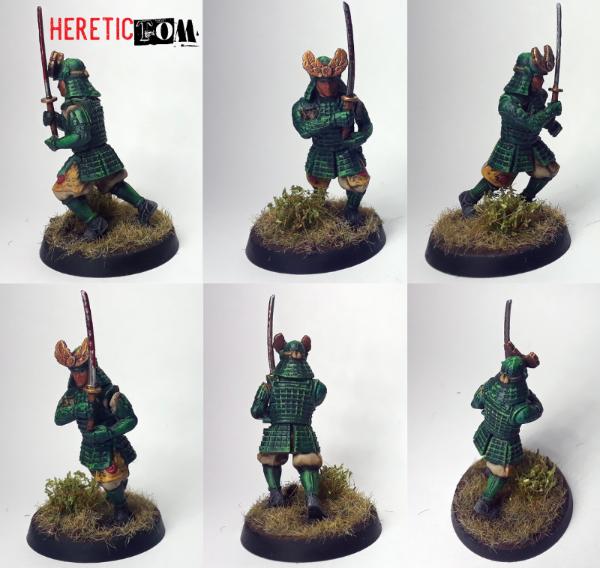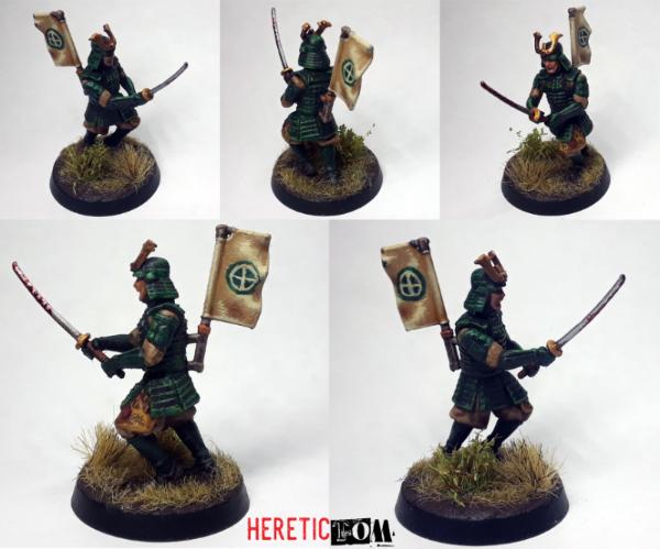 The samurai are from Warlord Games, from the first edition of Test of Honour, though many of the minis predate TOH and have long been available as a stand alone sprue on their web store.