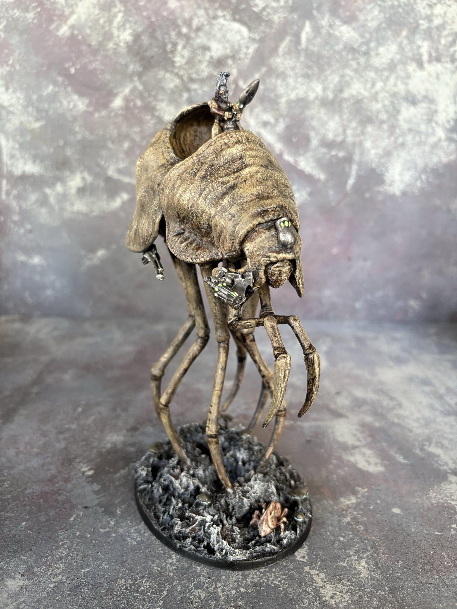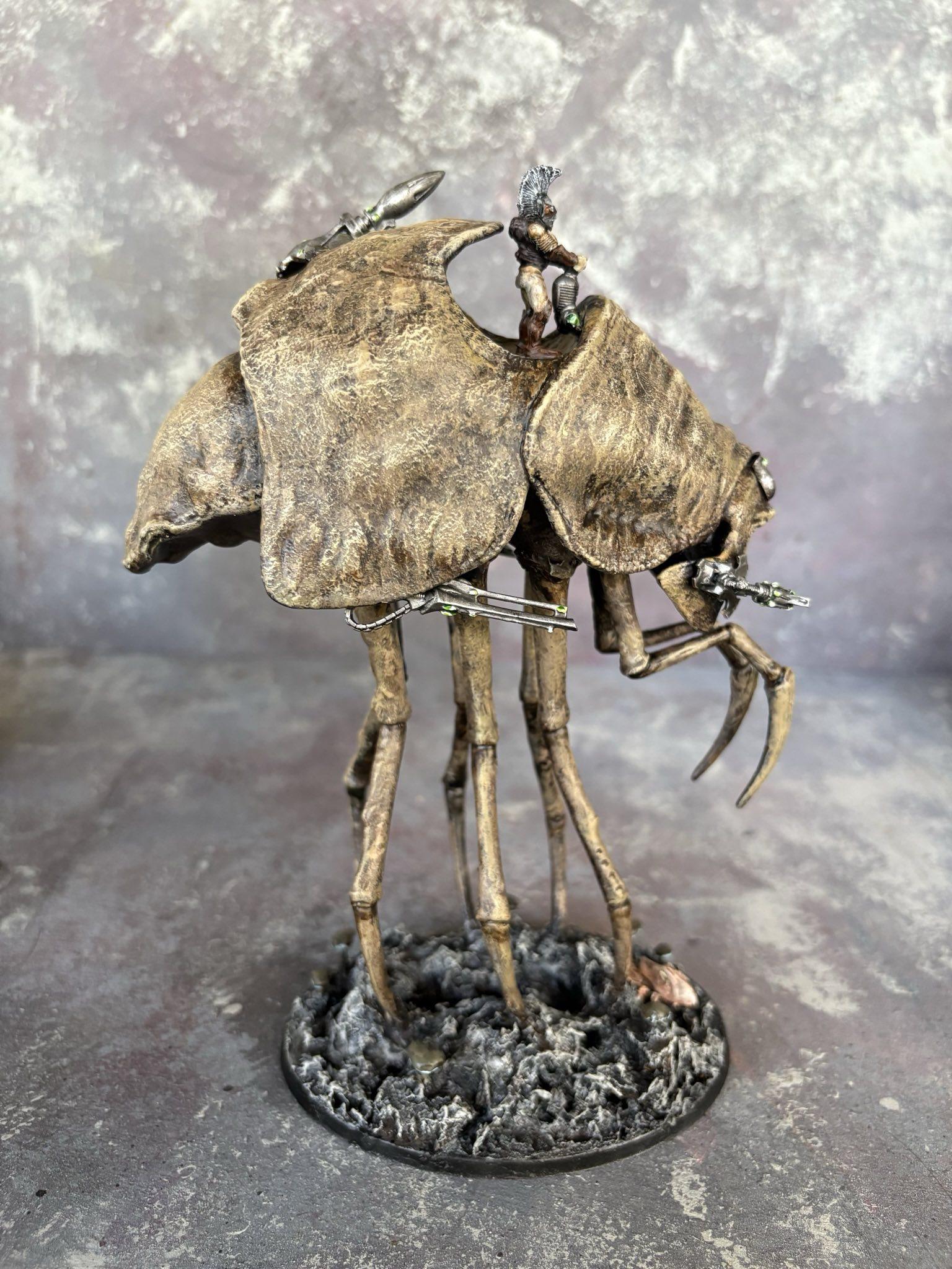 Sorry your wee one has been poorly but the Silt Strider is looking awesome! I like that wee beastie on irs base. I feel like some tall fronds on the base would help compliment this model, like aquarium plastic ones of a complimentary colour? Or maybe some dead trees…