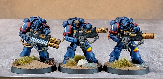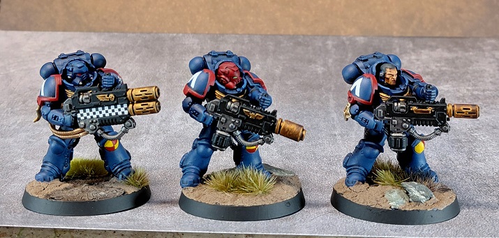 Why magnetize when you can just buy 2 boxes?  I considered magnetizing aggressors but it just seems like a ton of work. I just built them all with bolters. And will probably do so with the next 3 on my to-build list. I’m sure there will be situations where I’d want to put the flamers into a list, but the things are irritating enough to build/paint without the extra work. I’ve only build the jump guys from the 8th starter with bolters, so have no idea how hard that kit is to mag. But also, in a world without points for wargear, why not plaama? Good call on the wire stands for the jump guys. So much hate for those curved jump stands. Looking good! Edit: Combat shields didn’t have the same invuln as a full storm shield (it may have only been a 6++, might have been 5) but didn’t take the hand, so you could still get an extra attack for pistols/paired weapons.