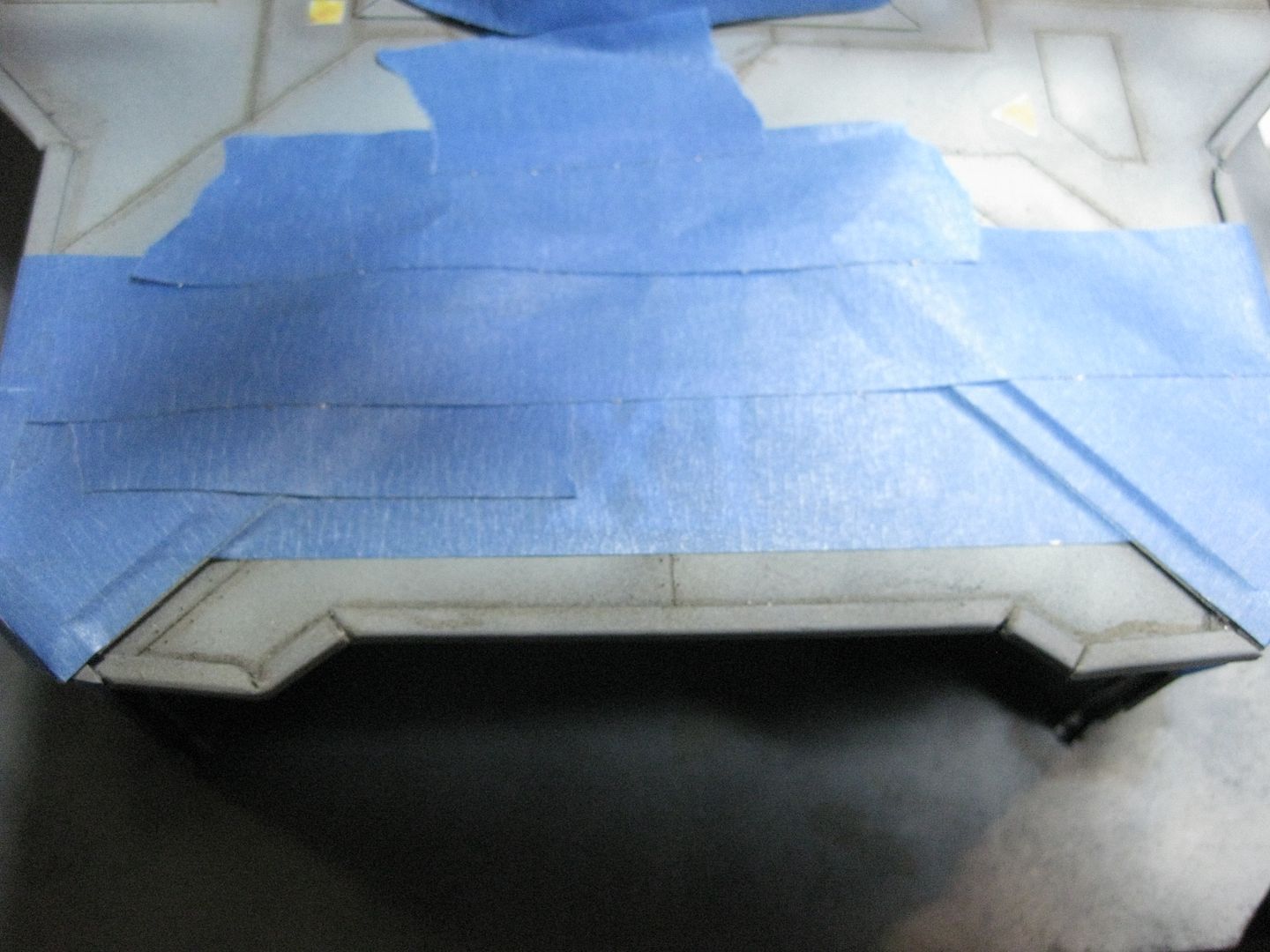 Nice. One trick I've used when masking off stuff (NERF guns for a larp...) with tape to reduce under seep is to use the BACK (ie the "dull" part) of an exacto/hobby knife to "crease" the tape into irregularities, and lips..