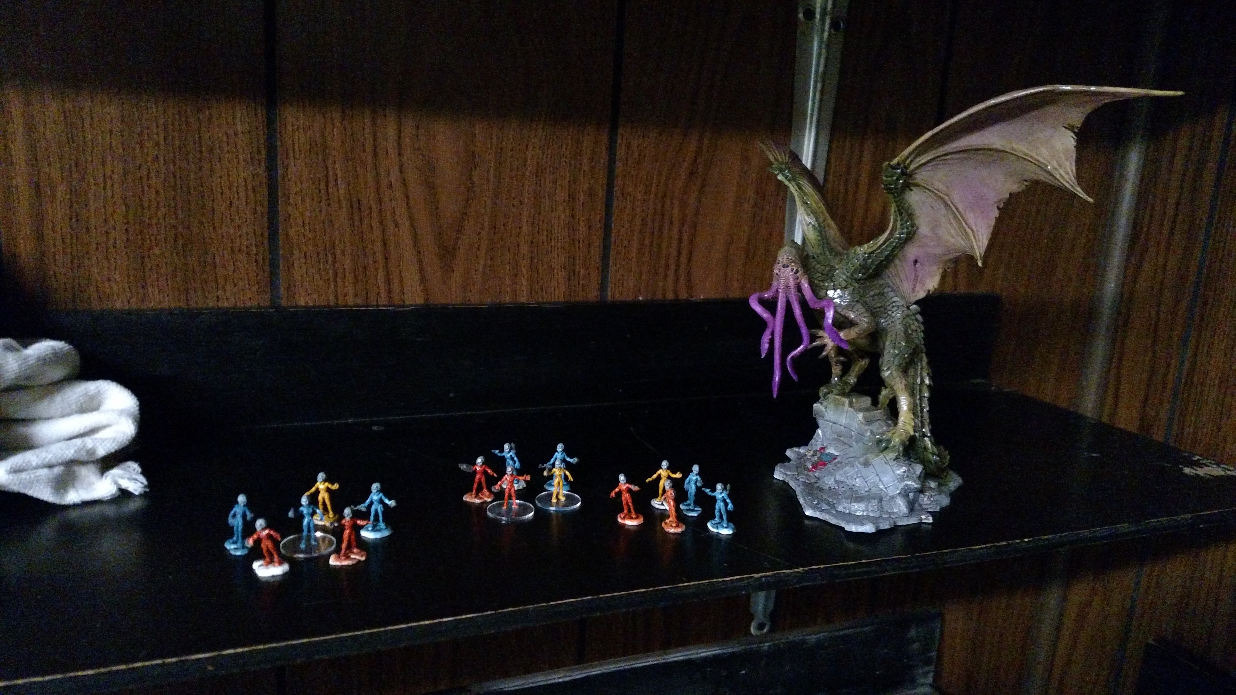 Thanks, I like skinny Cthulu too. And he's even finally almost totally dry! I dunno if its a bonesium thing or what, but it took the stain *forever* to dry on some parts of him, but its finally more or less done on the tentacles and even the base is getting better. So he should be capable of terrorizing the other models soon
