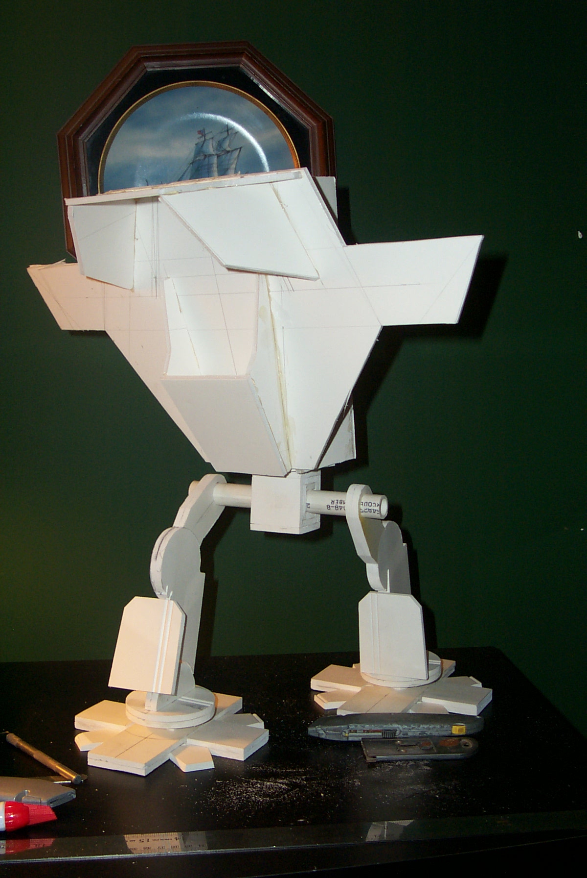 I probably will use 1/4 inch foam core poster board for the carapace and main hull to save weight after all that precedent has been set as the original employs that material and I've decided to go for the ball and socket gimbals for the hip articulation after all.