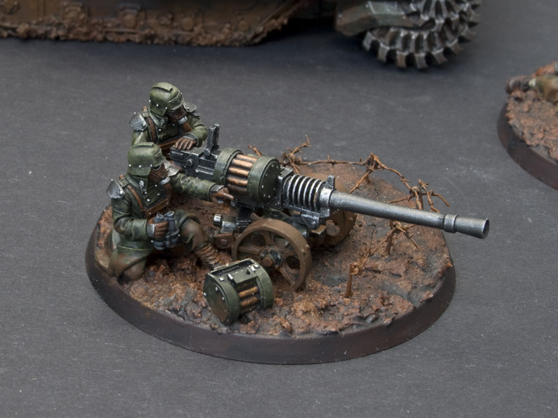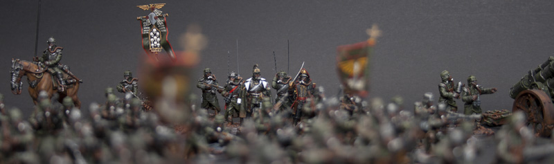 Except for the Centaurs and the Hades, not in the near future. BUT ... yeah, I def. need one, two or three Macharius!  And I'm working on a Russ pattern based on a Chimera with Russ turret and Macharius-like track cover and boxes behind the tracks. It's quite a challenge, though. And it's not a primary goal since I'm looking for a Siege Army with lots and lots of infantry - and of course heavy artillery! So when I have enough of the infantry, artillery is next, then tanks. Oh ... and I need a Gorgon ... And while we are daydreaming ... I see Titans in the distand future. kenshin620 wrote:Holy cow arent you that Death Korps guy from /tg/? You were asking about green or steel helmets. something like that. Big fan of your works.!