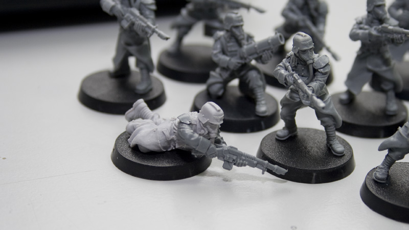 I have a quick question for you or anyone who knows (Please forgive me if this is obvious, I just recently got into 40K). When you create the bases, do you glue your men down first, or after the mud has been applied? I noticed on a few they seem to sit higher than the base, how were you able to get the mud to cover their boots and such if they were glued on after.