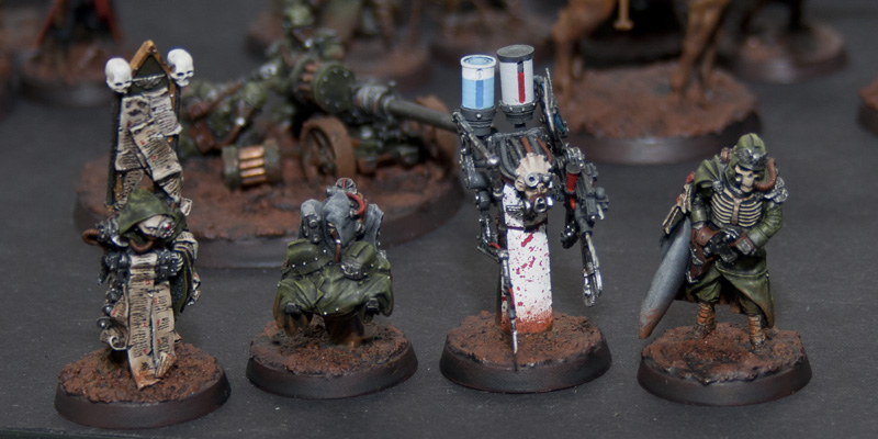 Really like the dark green colour scheme and mud. I agree with Commander Cain your HQ looks great with the white detailing making him pop. Looking forward to seeing the Engineers (some of my fav models - the revolver barrels on the shotguns genius) and Grenadiers.