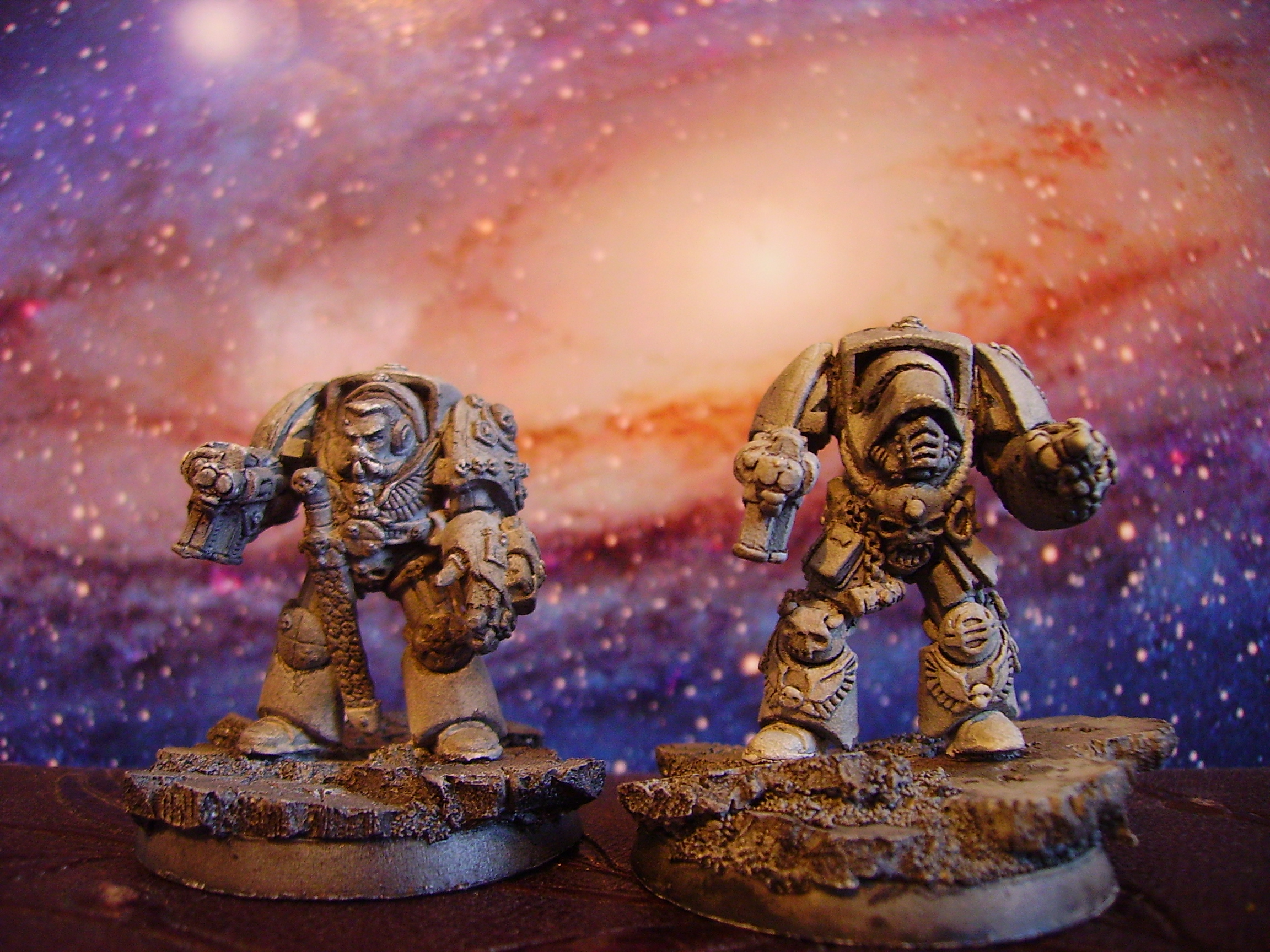 These are what I currently have stripped, assembled and undercoated. the one with the scanner thingy is a medic (apothecary). I'm going to do a small squad painted in the colors of my made up chapter The Dark Knights (derivative but who cares). They are related to the dark angels and they borrow a lot from the deathwing colour scheme