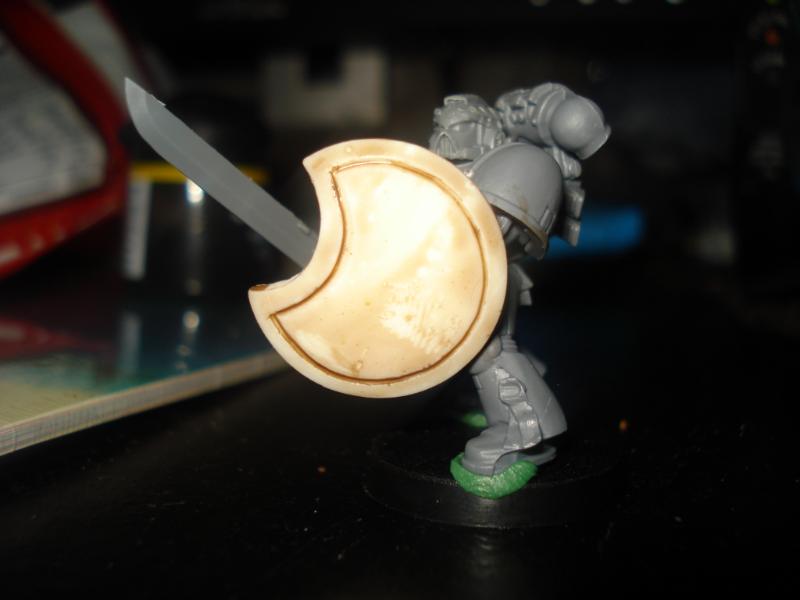 Personally I don't think that the shields should be the same though. SM are more of a band of heroes than an army of soldiers, as such they are equipped in a different manner to formations such as the Imperial Guard. I think individual shield designs or heraldries should be used to add a little bit more character to your army. I think a more Athenian concept rather than an Spartan concept would give you the individuality you want. Black hand it could be an idea to sculpt two of three blank shields of different sizes though. This would represent the natural progression that all armour and wargear goes through. It would further emphasise that fact that these shields were honoured artefacts and not just a bulk order from AdeptusMechcanicus.com.
