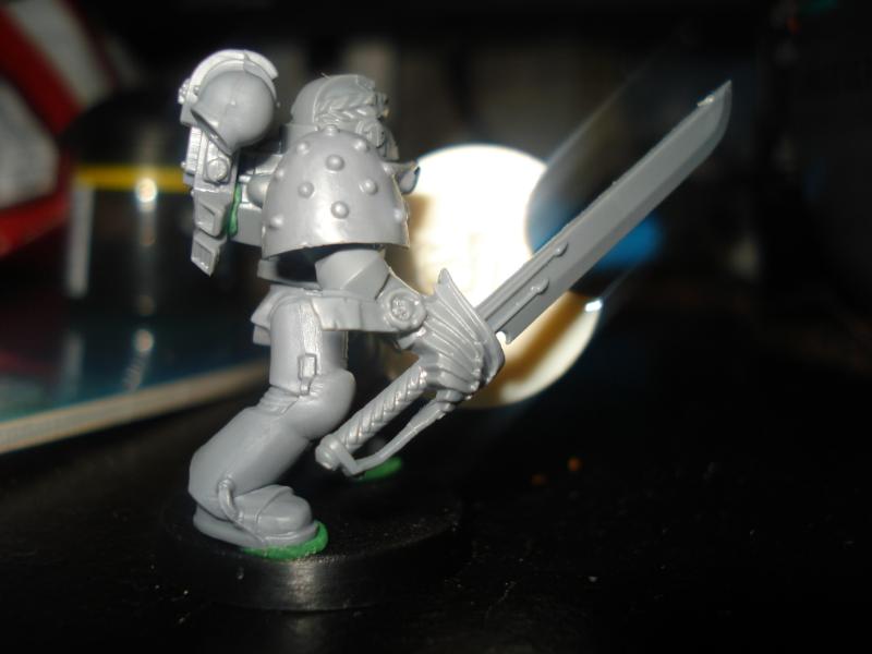 As for the fluff on Atrum Inritus I mentioned earlier, I'm thinking of something like Tzeentch took interest in him, turning its will upon his mortal mind. Though he resisted, refusing with all his might, he could not hope to stand up to the might of Tzeentch. Jedediah Storm, Chief Librarian, hastily erected wards and chanted powerful incantations of purity and righteousness. With this new power, Atrum found within himself the inner-strength to shrug-off the call of the Ruinous Powers. However, there was a small part of him that was curious at the power that could be gained.. curious of what it would be like to serve only himself. Tzeentch, capricous and unknowable, decided to take that part of Atrum's mind, and made it physical. A copy of Atrum, bolstered by dark power to insane levels, who was completely against everything The Original stood for. These two identical yet so different beings, one holy, one not, fought a titanic battle before the entire third company. Though Atrum had much courage, his "twin" had been born with the strength of the warp. A killing blow would merely slow him down; a hit from him felt like an Autocannon. Atrum could not win, and was cast down, his body ravaged and severely damaged. Yet still he fought on, firing with pistol in hand as a last defiant act of faith. But as quickly as it had been born, the copy was whisked away by eldritch powers. Despite that near-fatal conflict, Atrum refused to be interred into a Dreadnought, insisting he was not badly wounded enough. Though it took many months, he eventually returned back to fighting-form. Though he had suffered dearly in the ordeal with his "copy", he came out of it - his faith had been tested to the utmost and he had not been found wanting. Although it pained him to say it, Tzeentch had actually helped him. It had removed all doubt about his faith, about the Emperor. About Mankind's manifest destiny to rule the universe. The very thing that sought to corrupt him had made him uncorruptable.