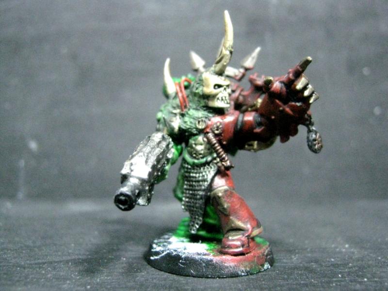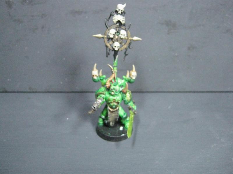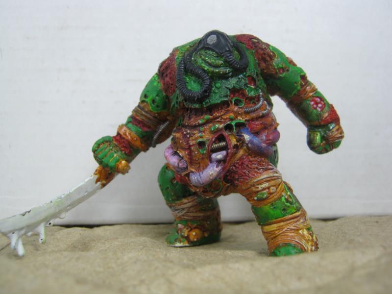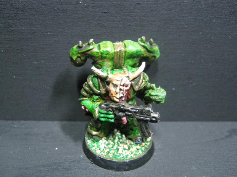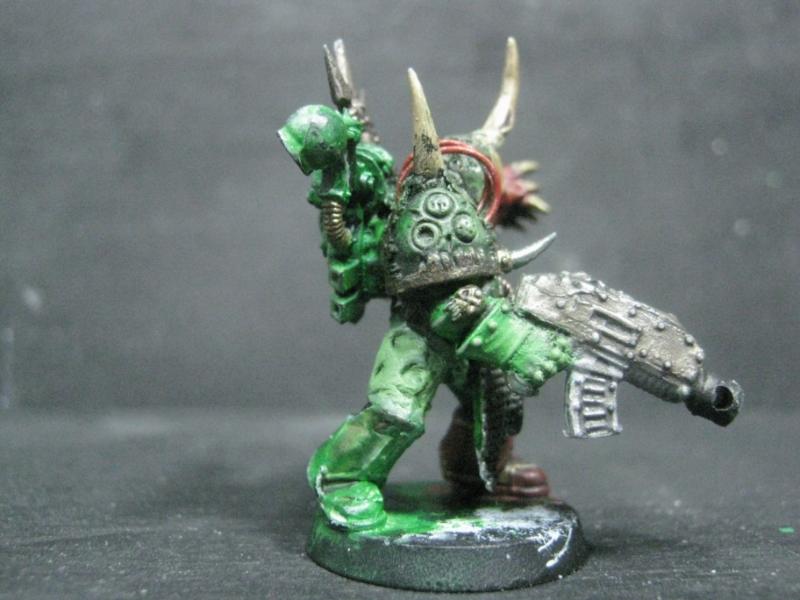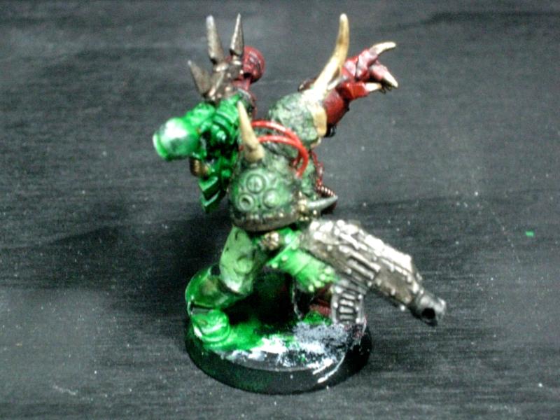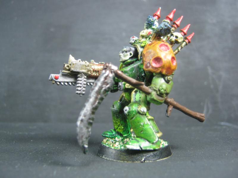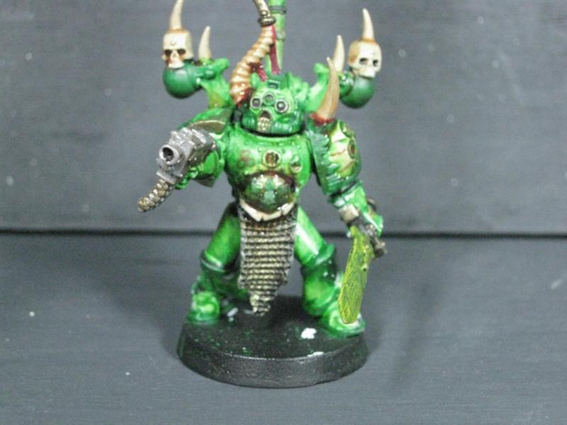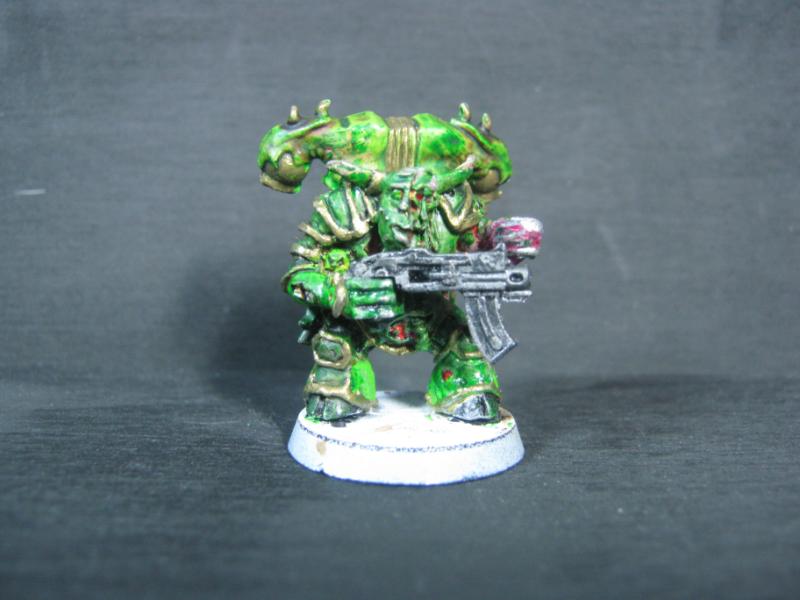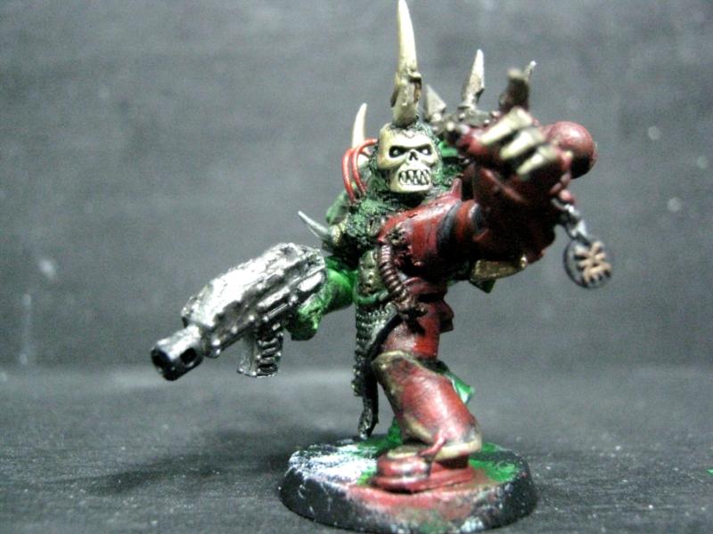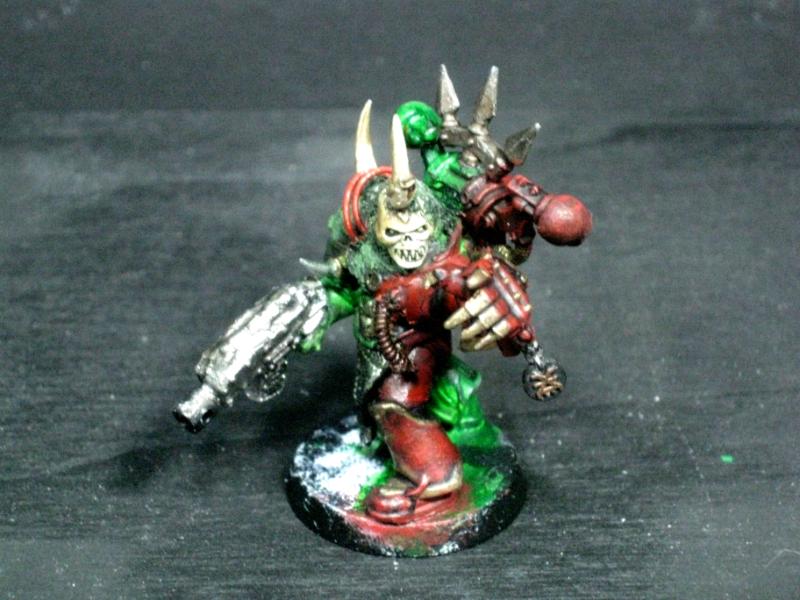 Aspiring Champion that I painted just the other day. I know the model is just a regular Plague Marine, but his pose is dynamic so he stands out.