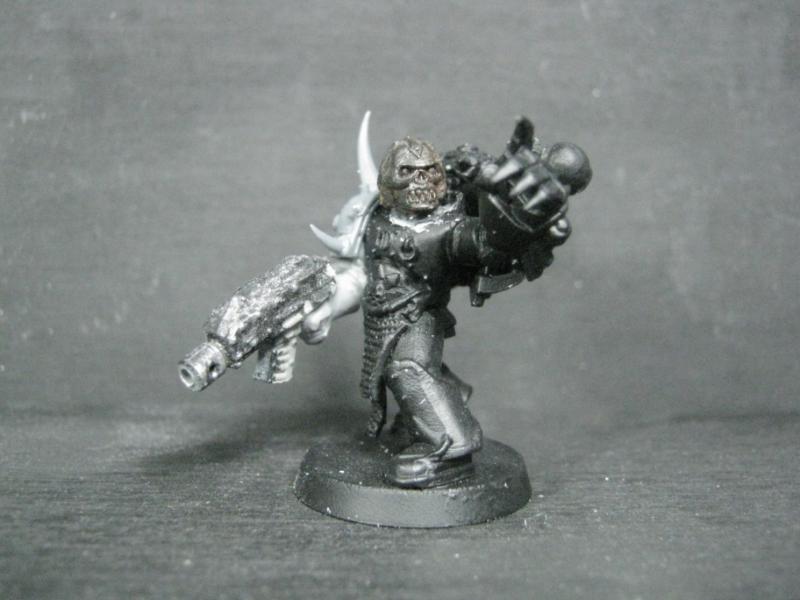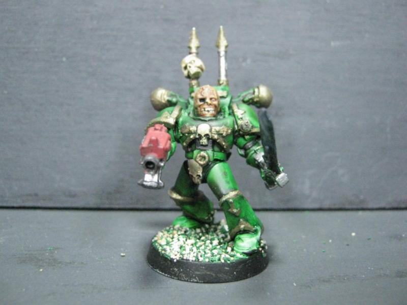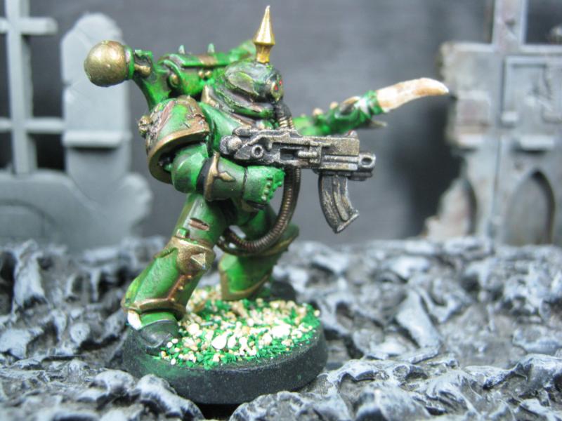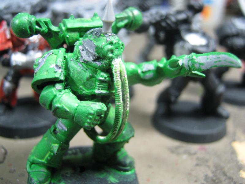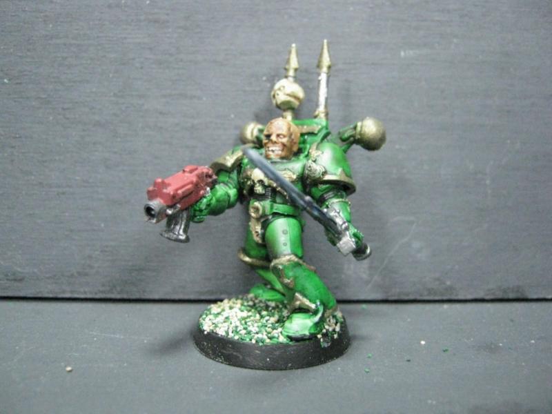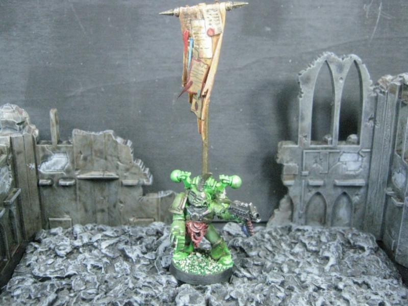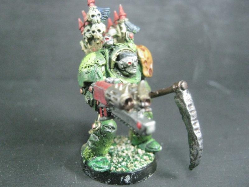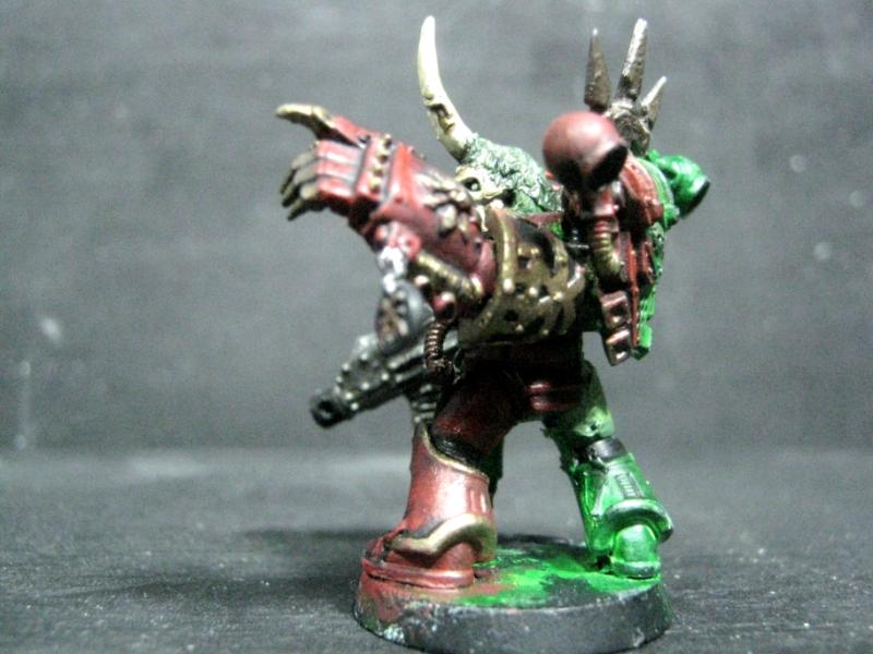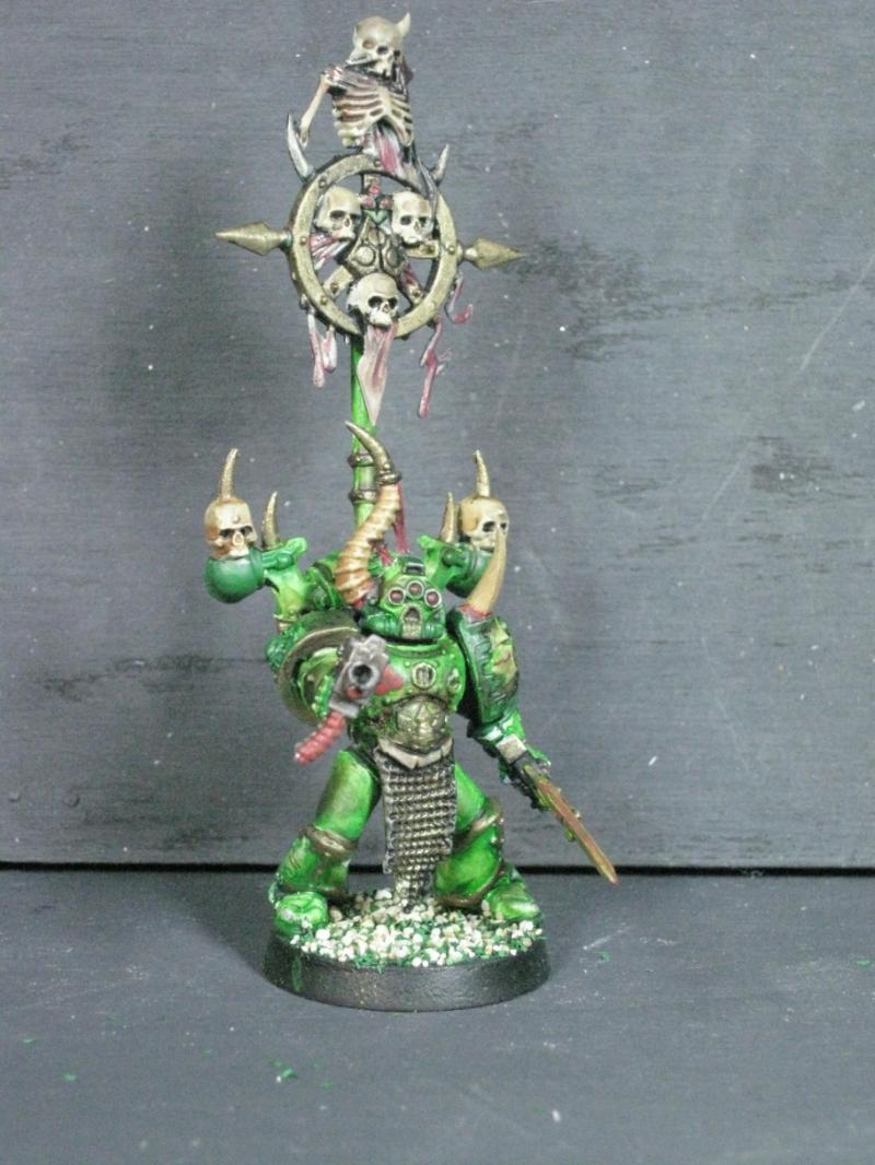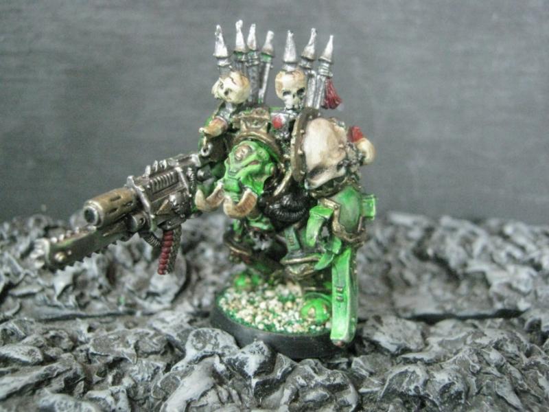 Aspiring Champion that I painted just the other day. I know the model is just a regular Plague Marine, but his pose is dynamic so he stands out.