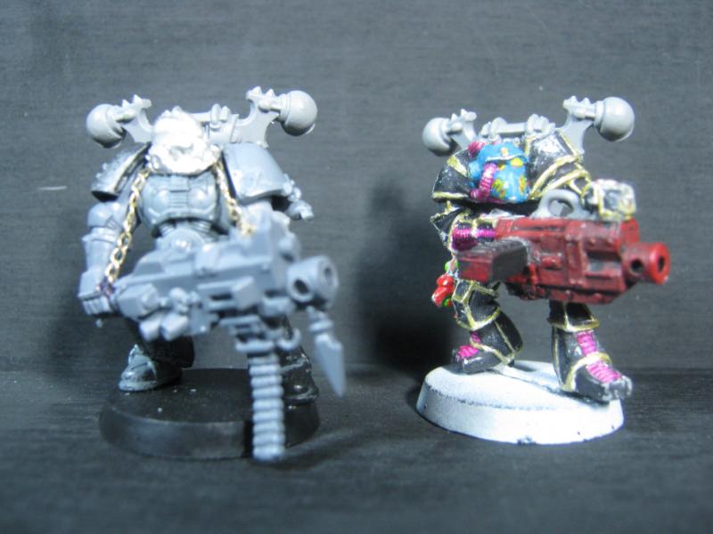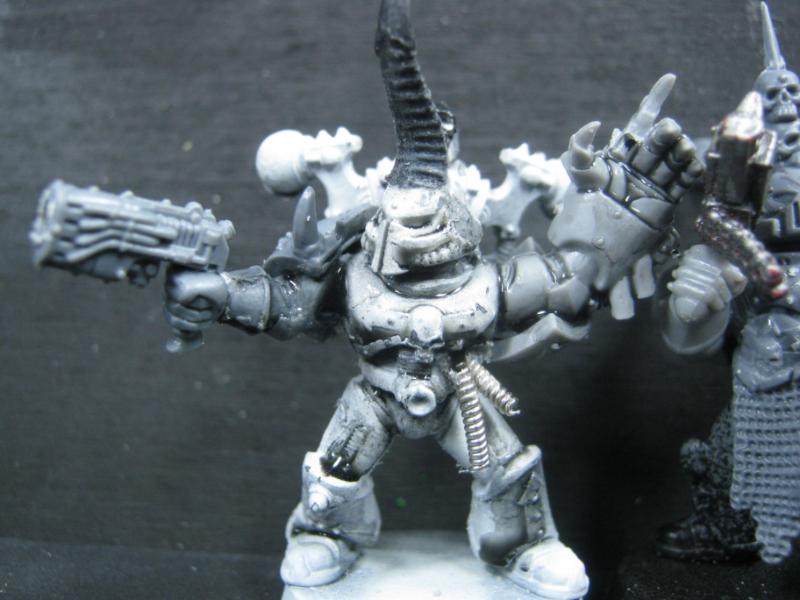 Glued and ready for priming. Those are 2nd ed Chaos Terminators in the background for size comparison. It's a little smaller than I originally expected but considering the role it is going to fulfill in my army it's exactly what I need it to be.