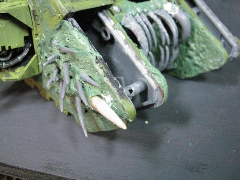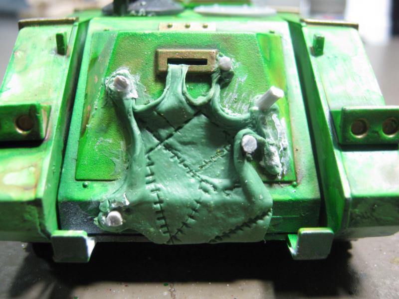 Once I had the "work" done and I had the model as solid as it ever will be again, the fun truly began. I dug through my bitz box again, mixed up a huge ball of GS, and invoked the ruinous power of Father Nurgle.