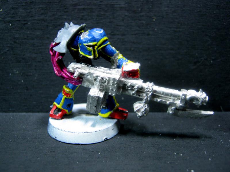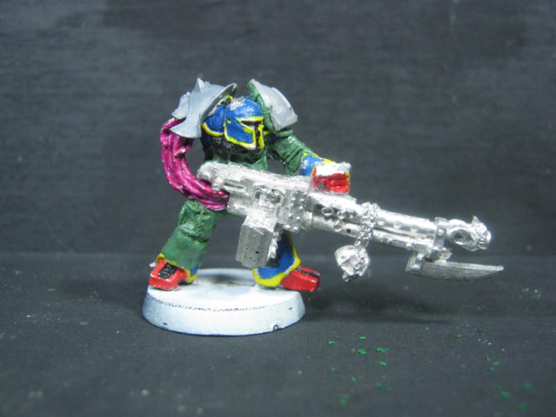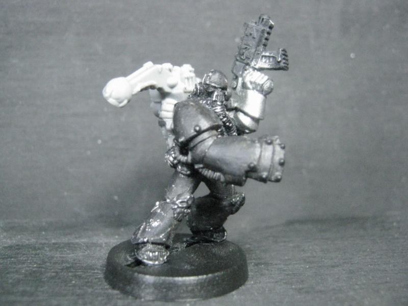 And it's done! The Combi-Bolter was added, and the model got had the final work done it, a light wash w/ a bit of black to shade in specific places, and some Devlin Mud in others.
