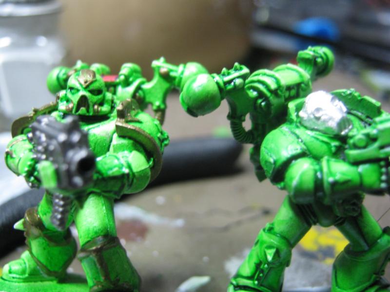 @ Rabid Ferret- I've all but soaked it in GS and DM, hasn't had the effect I am hoping for. I think a new batch of ink is on the way. I've also noticed that my Plague Marines getting brighter and brighter... I need to take one of the old ones from the original 1997 batch and use that as my guide, I've been just mixing lately and I'm off enough that some stand out more than others. I can "fluff" it by saying they are newer to the Death Guard (which is true...) but I need to regain some visual continuity.
