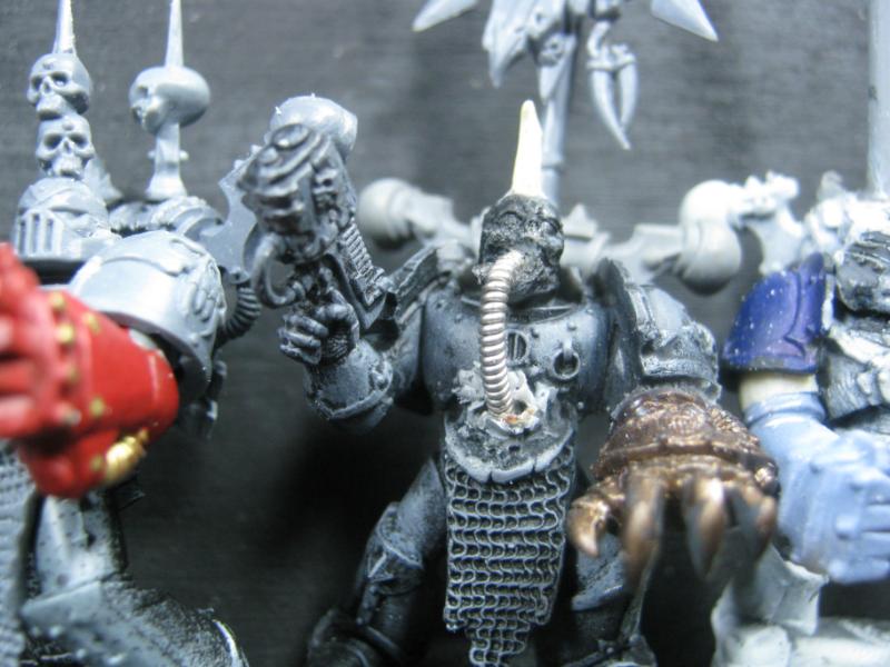 However, that doesn't mean that I won't be working on peripherals. I have a very strong interest in creating a massive Traitor Guard / Chaos Cult full of miniatures that are currently living on my Shelf of Shame. I've been working on it here and there behind the scenes, and have pressed miniatures from Necromunda, IG ranging from RT, 2nd ed, and current plastics, Blood Bowl, Demonblade, Ral Partha, Reaper, etc into service. Some are sporting PIP gas mask heads, others have been horrifically mutated with the help of a wonder saw, GS, and a huge Chaos bits box. Without a doubt this will be my next project and of course I'll be tagging them along with the Death Guard and keeping this thread alive on Dakka until they finally get sick of me and give me the boot. So I'll be around for a while longer I think.