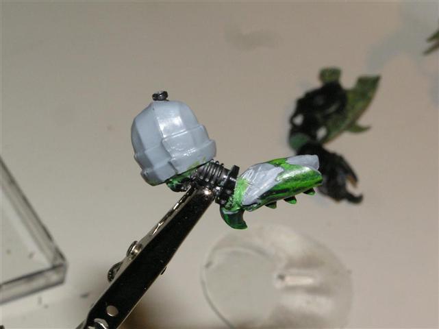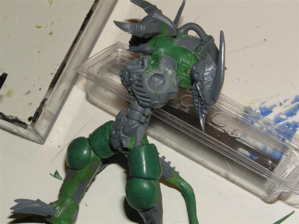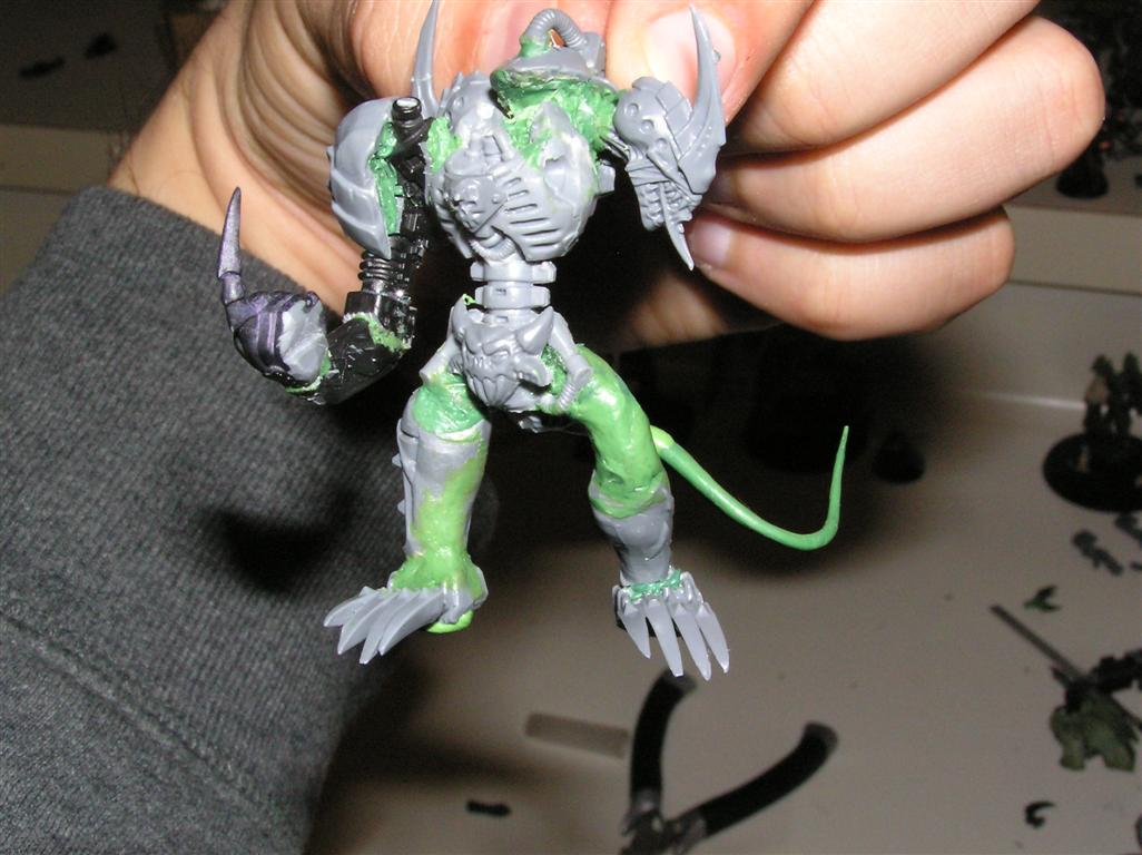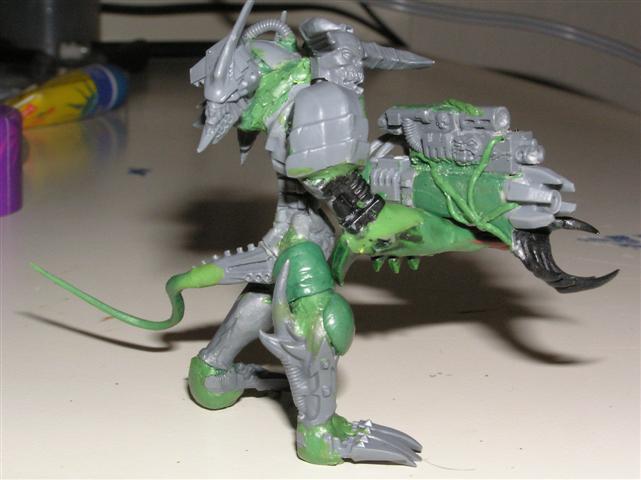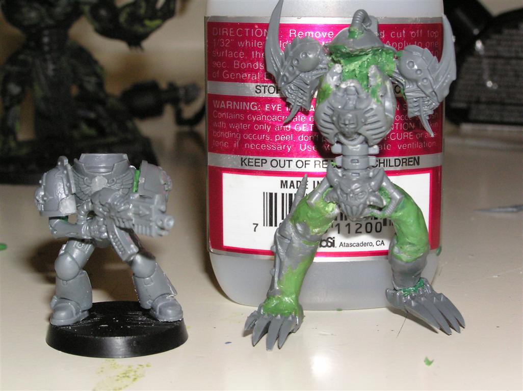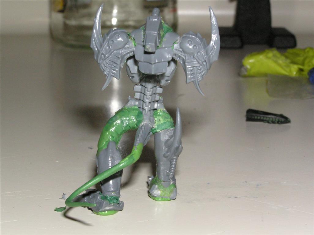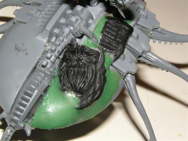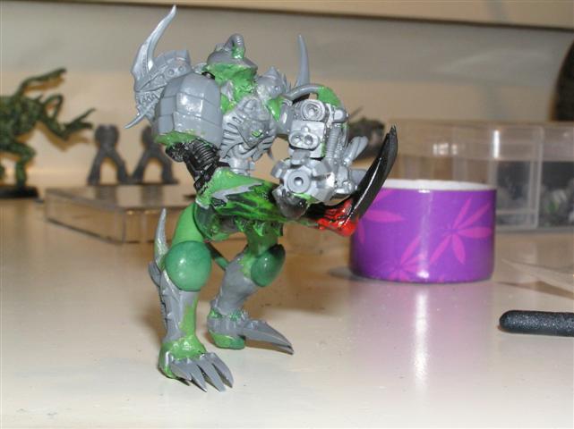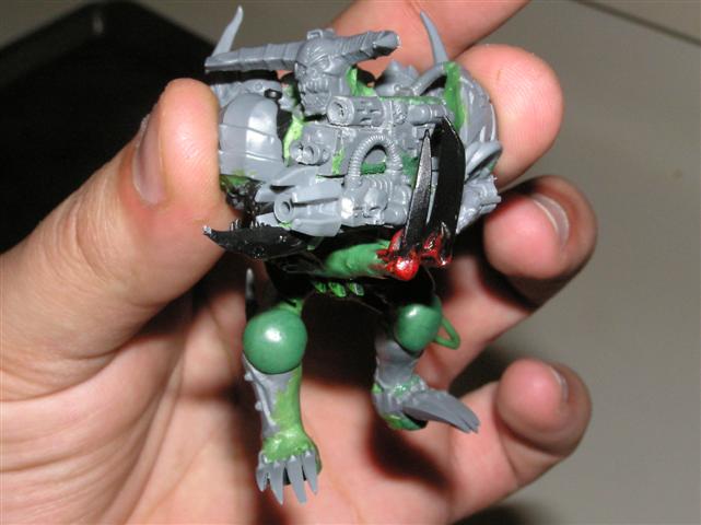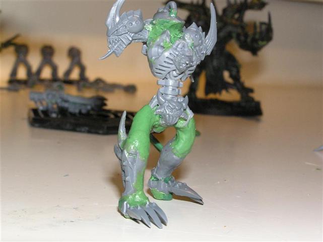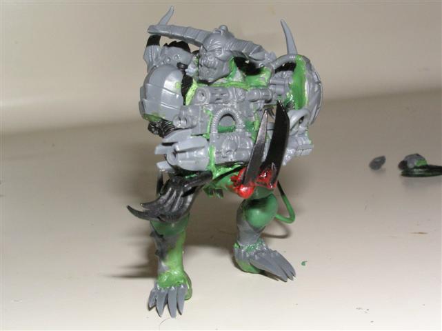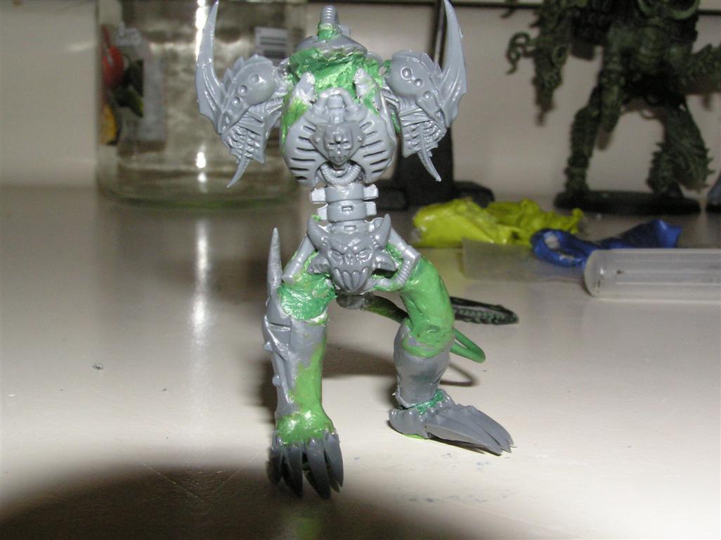 As for the head, well I cheesedicked out and I'm using the "helm" head from the DP kit. The face is VERY daemonic and is screaming.