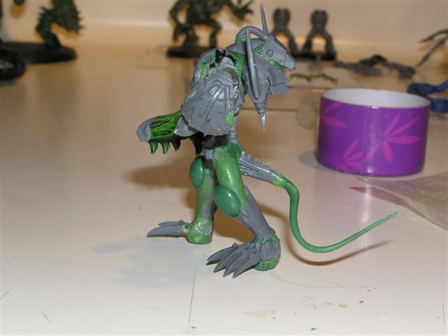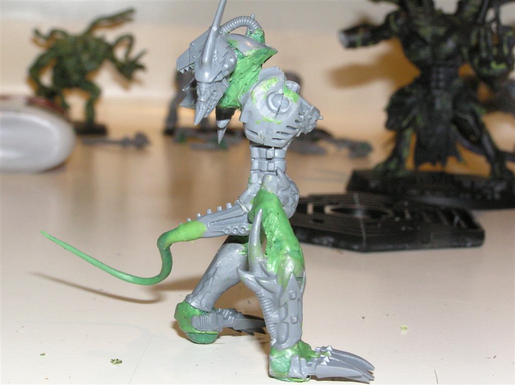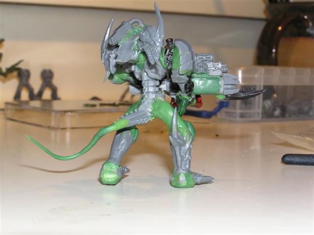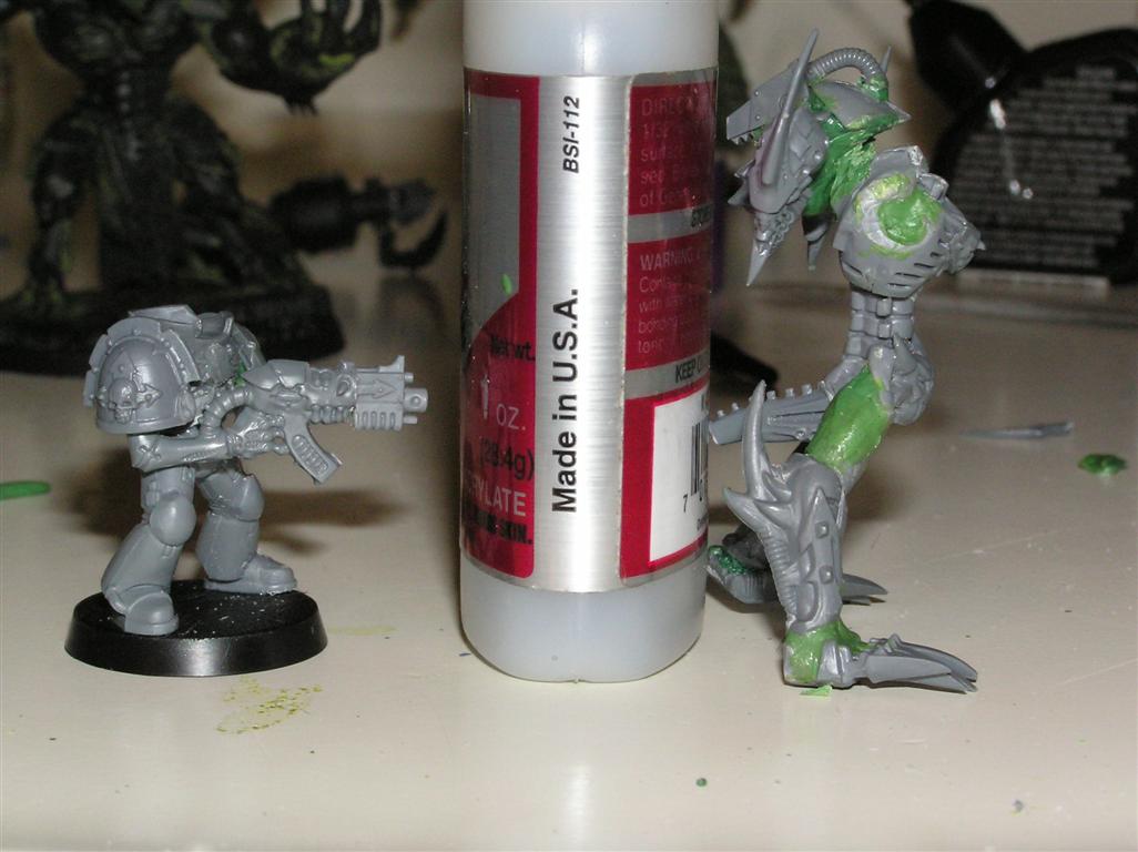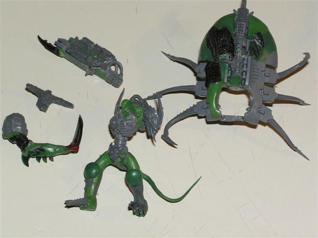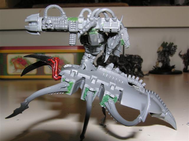 Picked up a Necron Heavy Destroyer to source some parts from.....VERY cool cyberskull head in it. Making good headway on the IW marines, and also started stripping my 'nid-dread thing. Gonna do it in the same color scheme. Prolly post up some progress pics tomorrow.