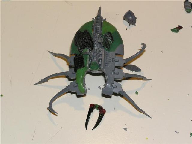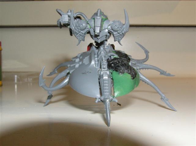 What about using a carnifex backplate with the spines in it. I think if you apply some heat you could bend it a bit to suit.I dont use nids so no idea if it would work. Large spiders (i believe) can shoot the hairs from their back as an irritant/ defense mechanism. I would suggest thicker stronger legs on the destroyer body as they look far too weak to hold anything up. However the original concept you had with that body is/was good and i liked it.