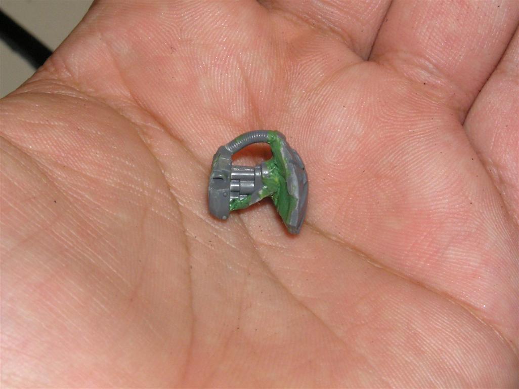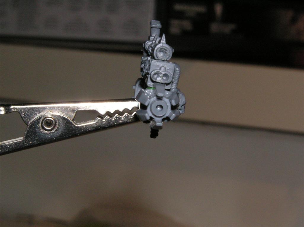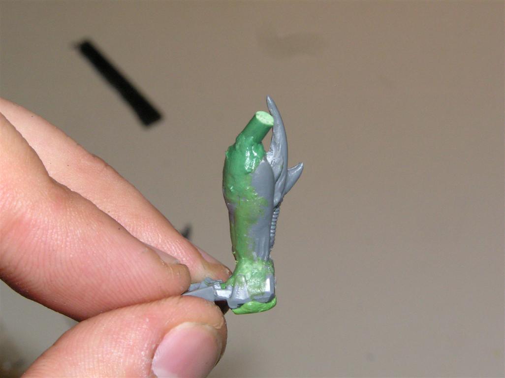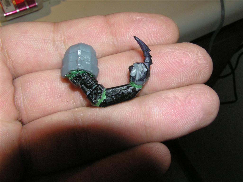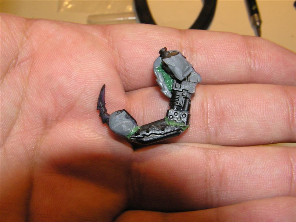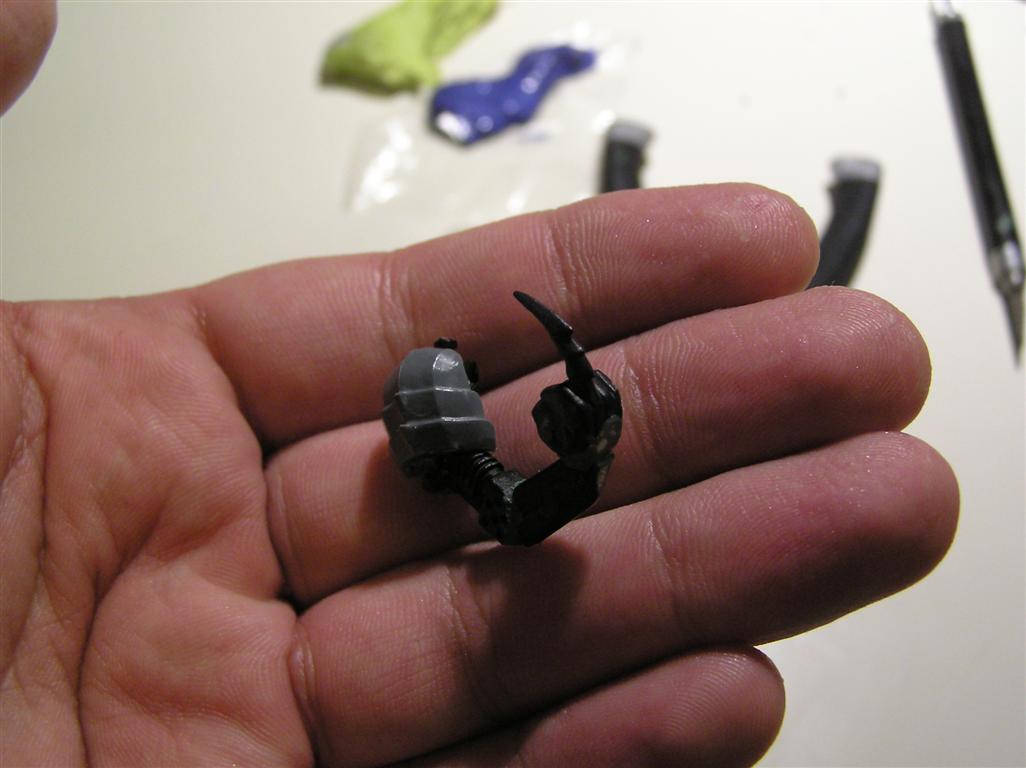 So yeah....trying out a thing with the BFG. Instead of replacing an arm with it, I'm tinkering with it actually BEING an arm ending in a CCW. We'll see how it pans out. I like the effect of the arm being so large and heavy that the other one is basically ONLY to help him aim and support it, but if anyone gets near, he can still look capable of dealing a physical ass whupping but in a very very unnatural way. Automatically Appended Next Post: Heh, sticking with the biomechanical theme.......