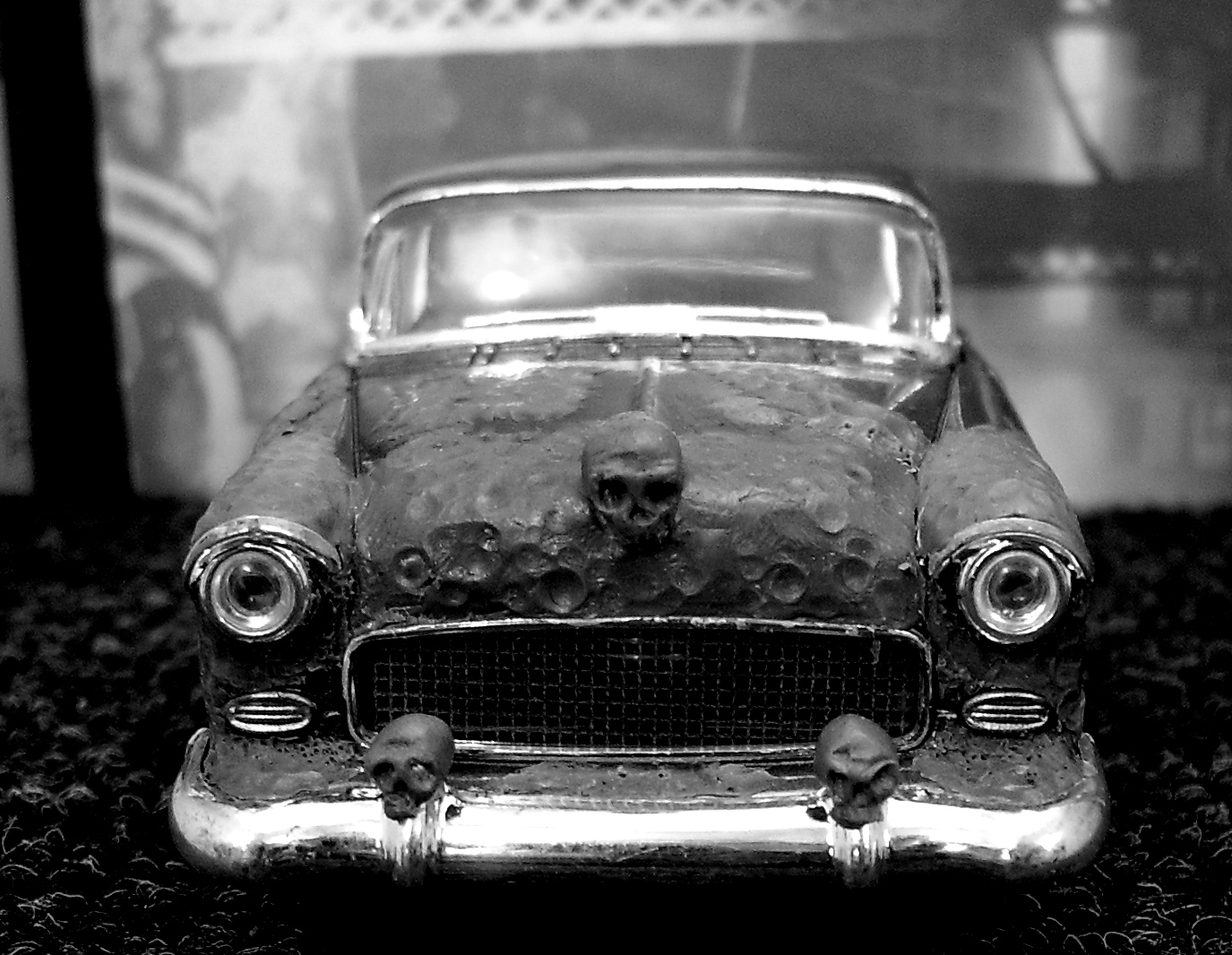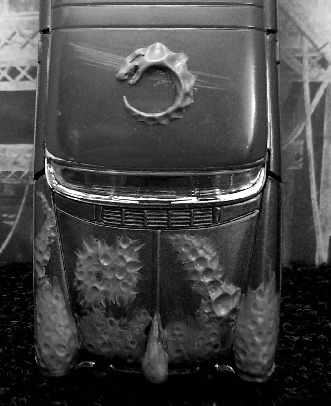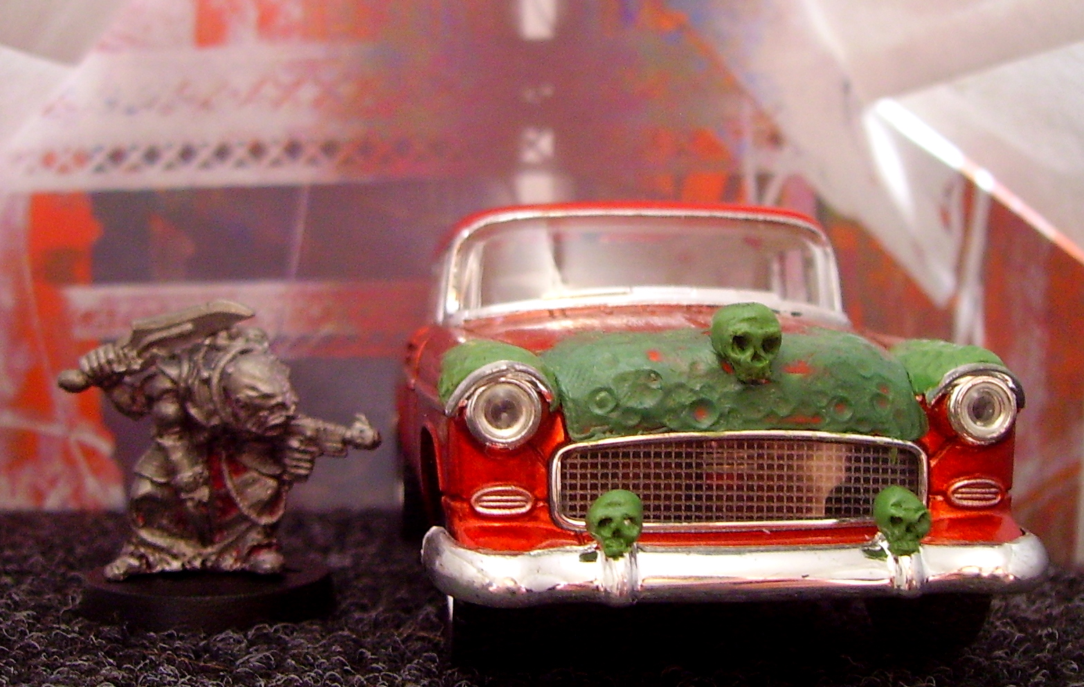 The limo will be fairly well covered in the skulls and corrosion - maybe with a little bit of "bio-mechanoid" H. R. Giger type stuff if I can master it. I've got skulls down to a fine art now.