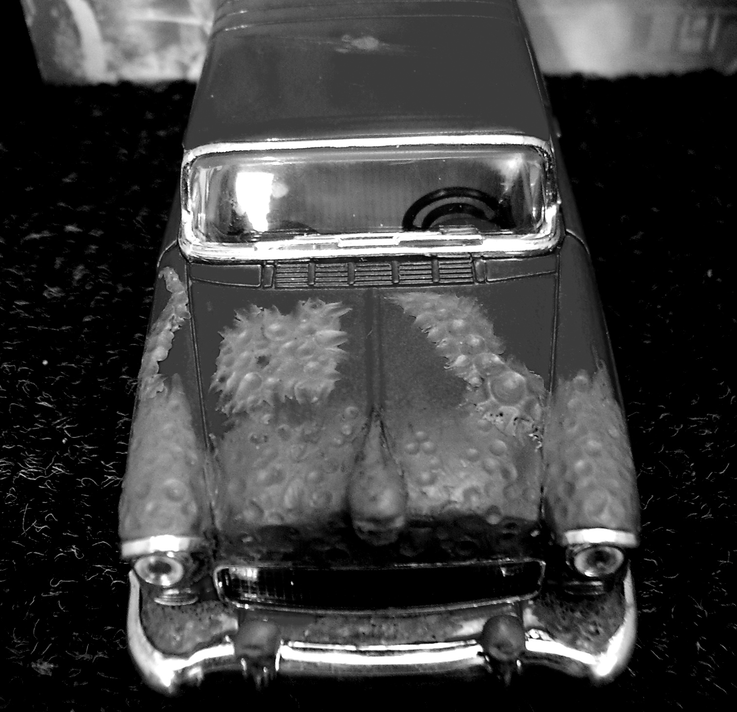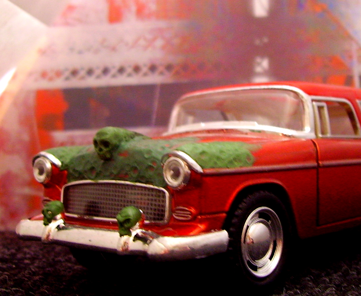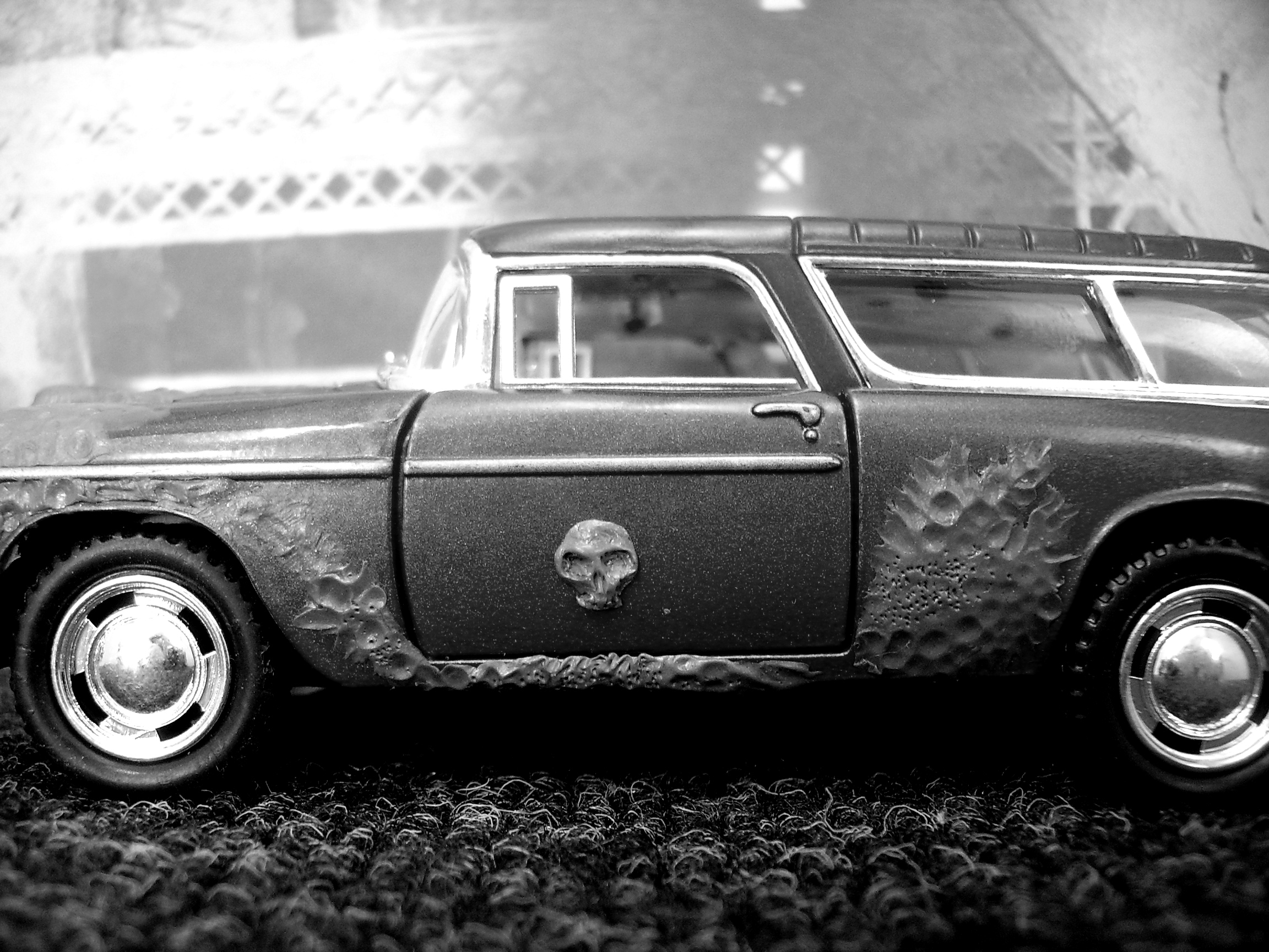 The limo will be fairly well covered in the skulls and corrosion - maybe with a little bit of "bio-mechanoid" H. R. Giger type stuff if I can master it. I've got skulls down to a fine art now.