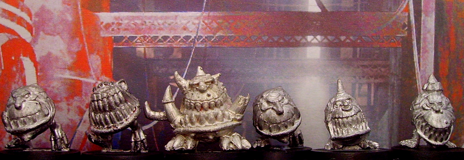 Aha! I had totally forgotten aboot the teeth. Yes six little rogue trader era Orksies are on the way - only 5 pounds 50 includng postage! Old orks are cheap! One of them appears to be holding an attack squig which is fun.