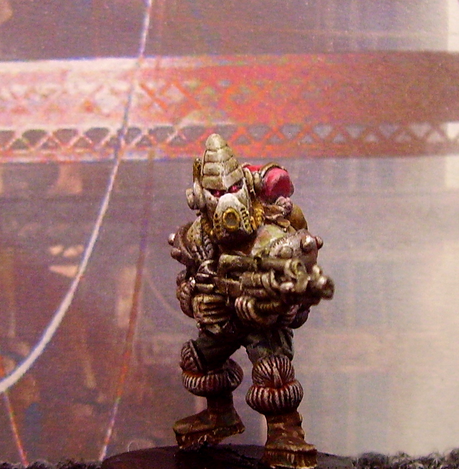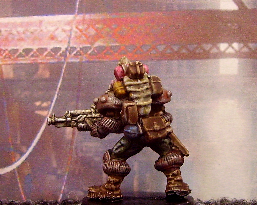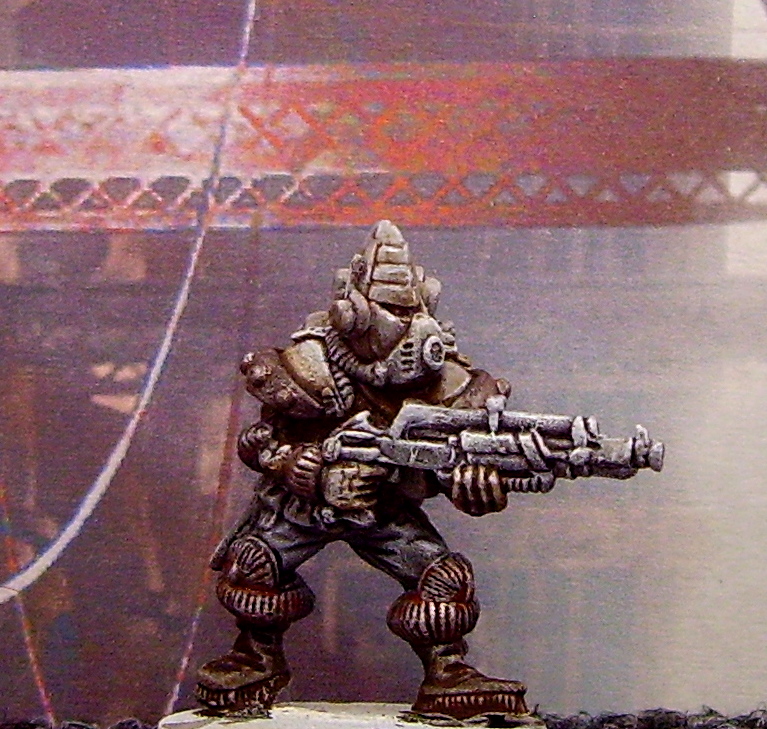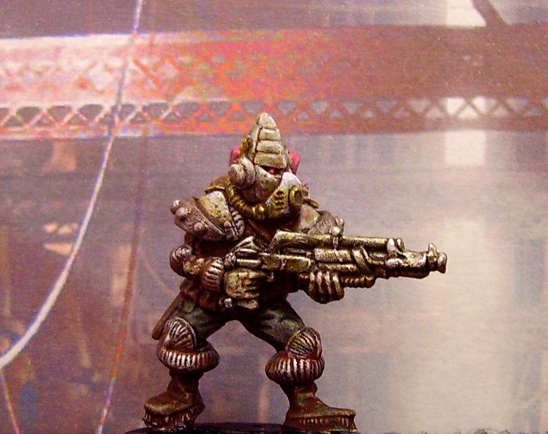 I love how kitted up the model is. He certainly doesn't look like anything in the modern day GW ranges, and he holds a ton of character despite just being a 'guy with a gun'. Your paintjob helps loads of course, and it's funny to me that such a muted pallete can hold so much color variation. It makes if fun to look at as your eyes wander around and notice different things.