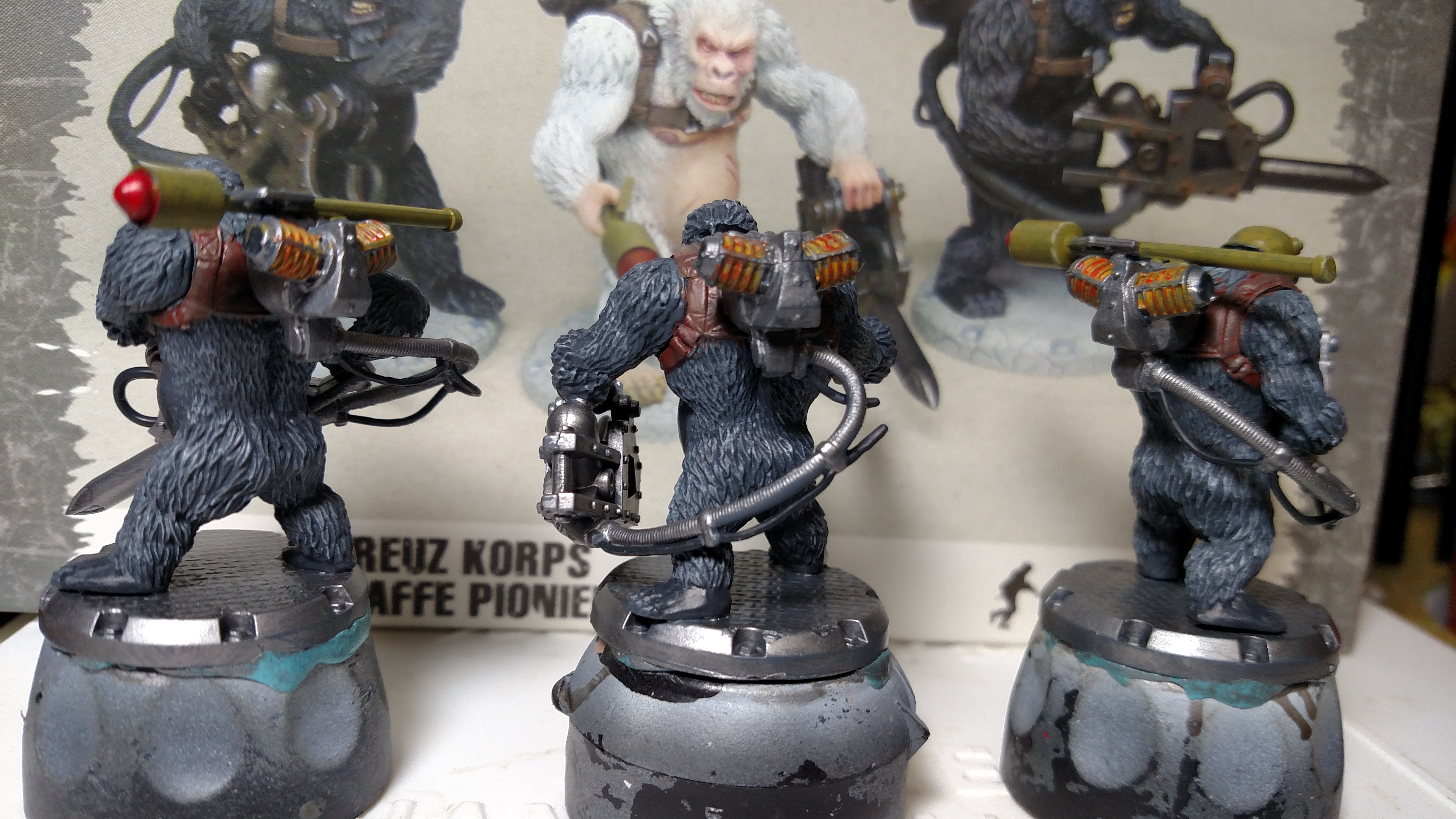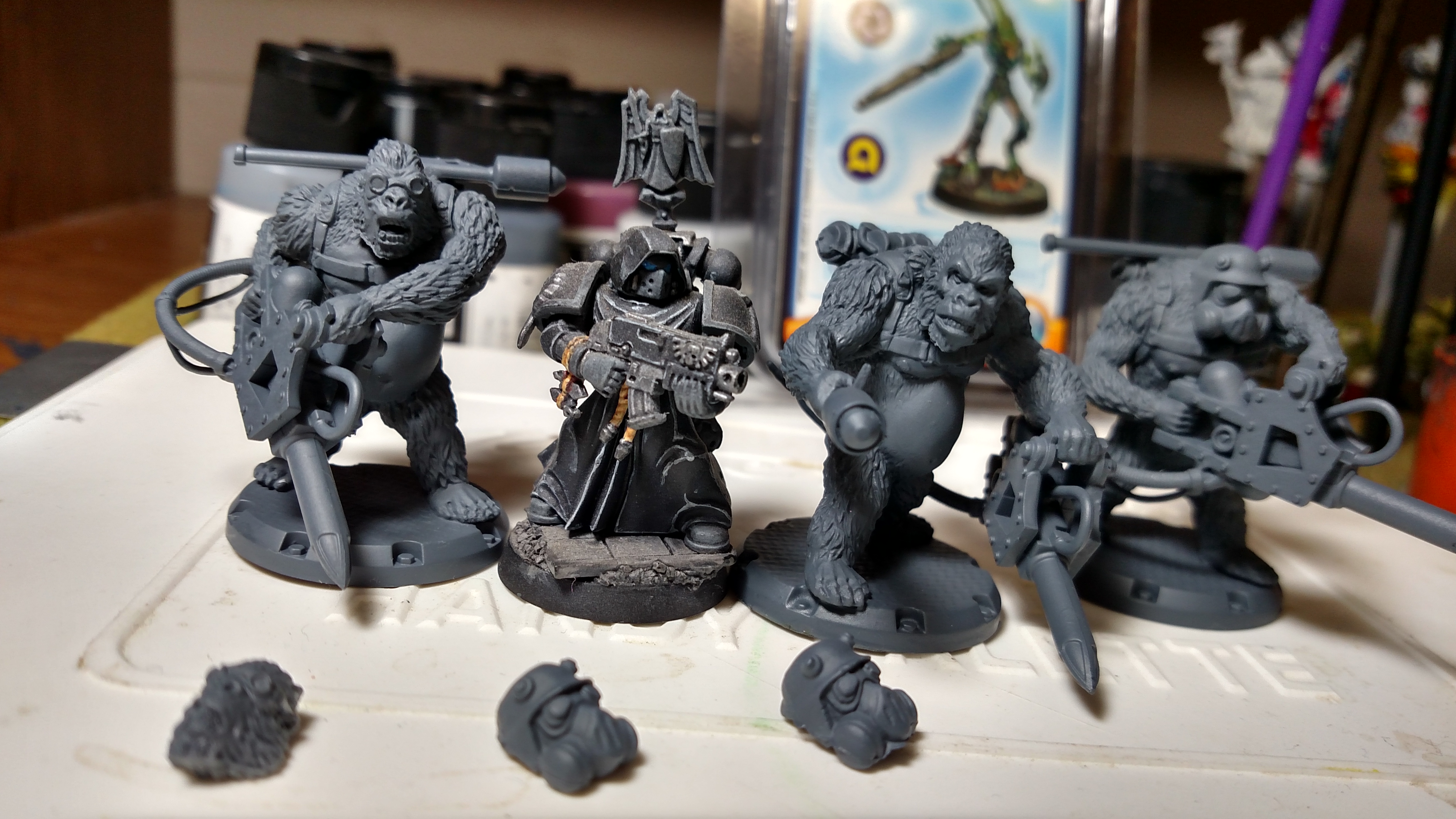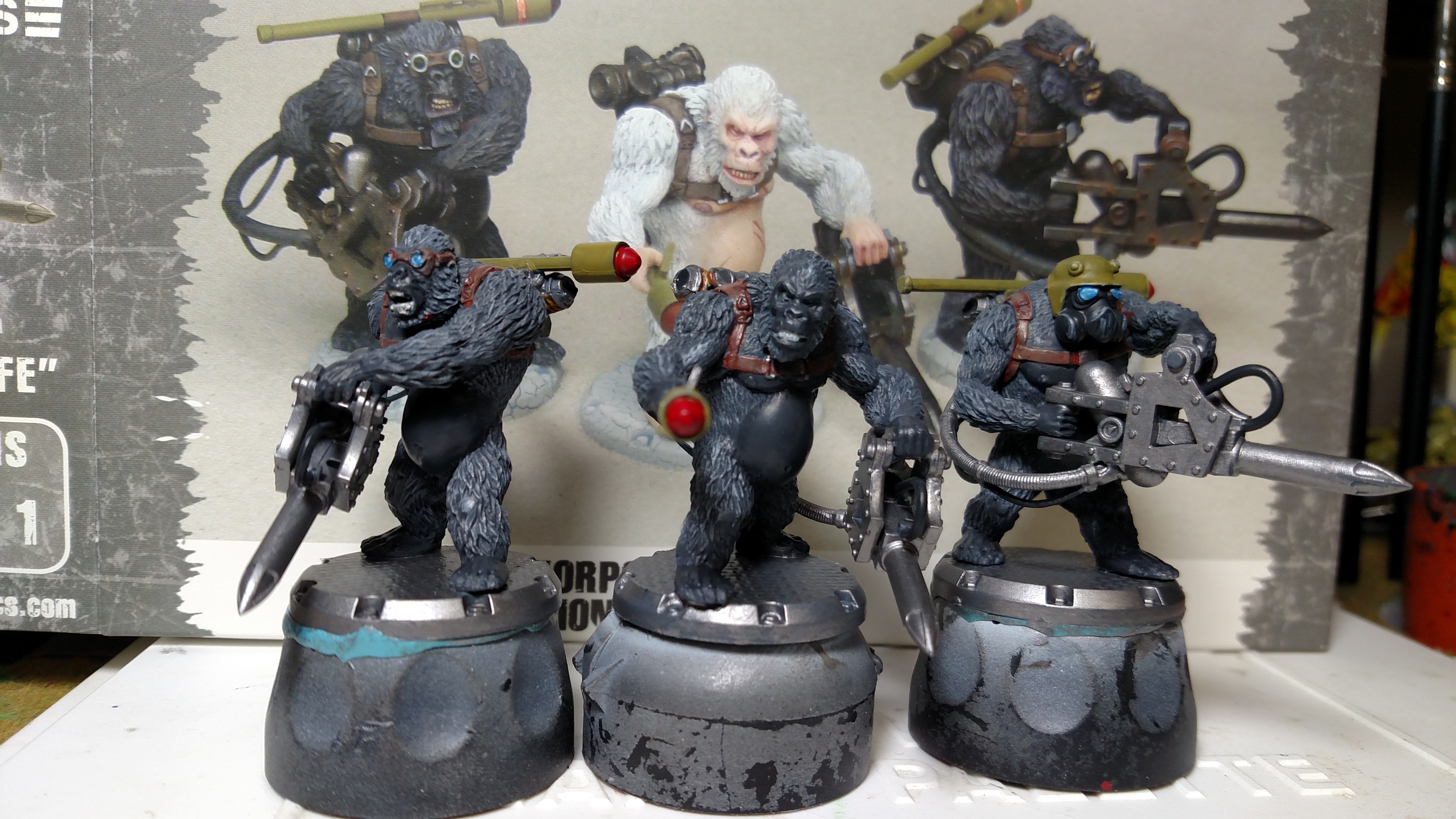 The gorillas look quality, primed is nice though I'll still have to pick off mold lines in places. I may look the range over s bit as any 5 dollar infantry hits the dollar/mini sweet spot in a decent material. Sci-fi up their guns and get short little projects for mercs.