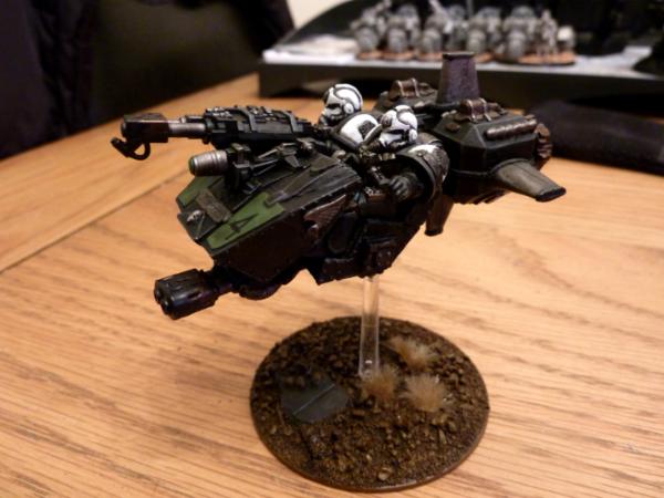 Old school landspeeder with heavy flamer and multi-melta, the pilot is meant to be in the process of pointing out a new target.