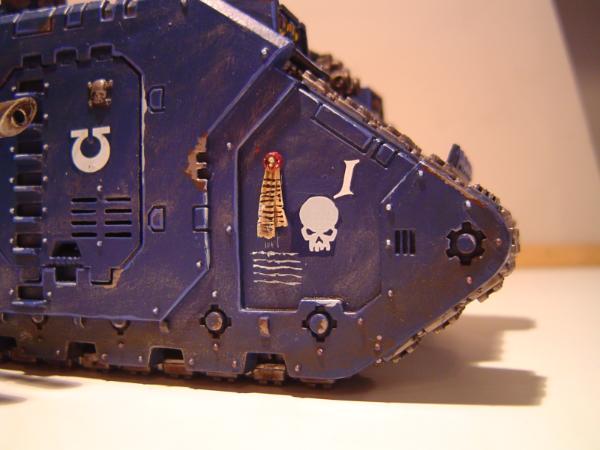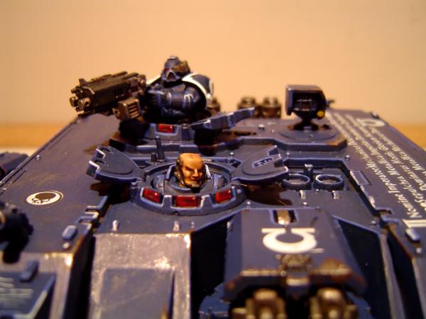 what do you guys think of him?? i had to add the skull to the banner as to match their dedicated rihno wich has a skull as mark for transporting veterans ( he's finished and will be updated soon)