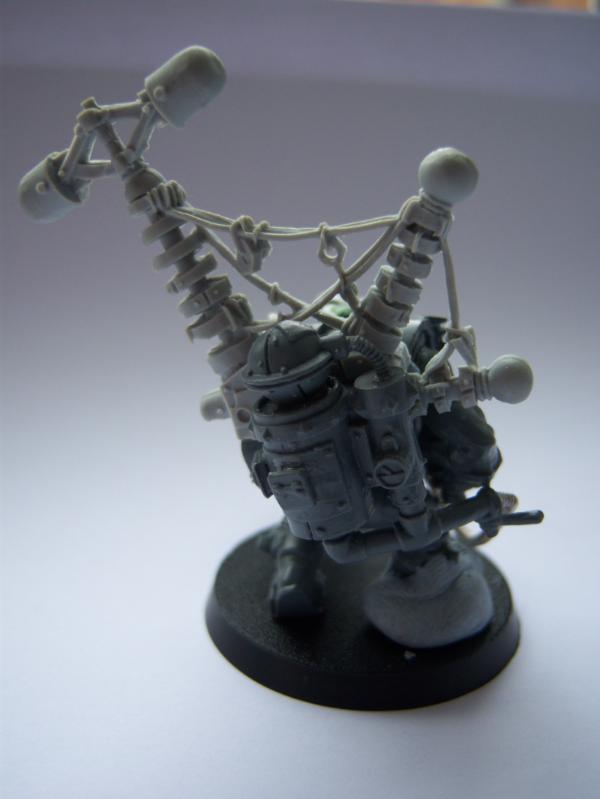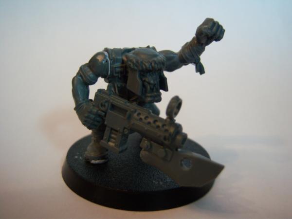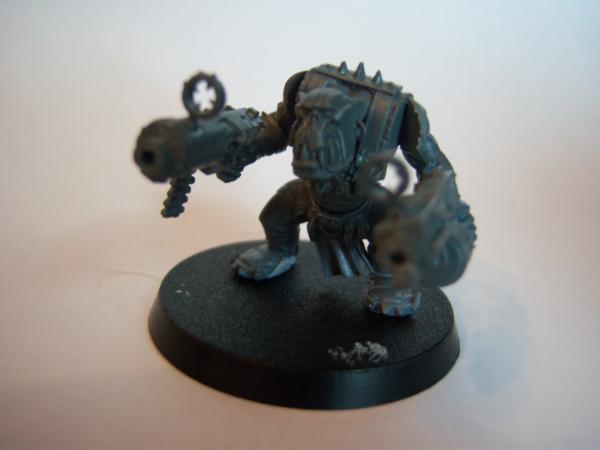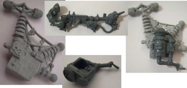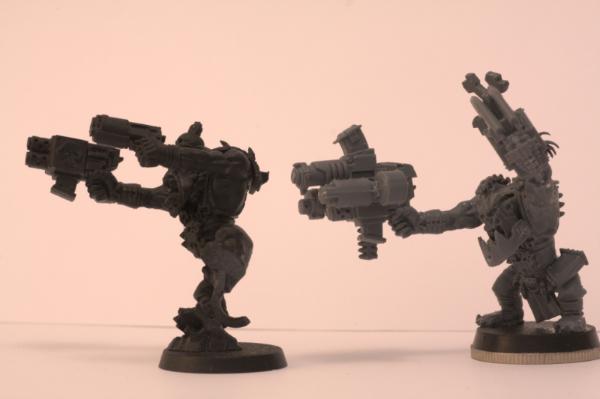 I shaved down most of the details on the back of the KFF, shaved down a burner gas tank and stuck the two together. I also grafted a Burner onto one of the Nob the combi rokkit guns. It was all fairly easy, the Finecast stuff cuts with zero effort, which is a plus. I also quickly blue tacked everything together to check it all looked alright.