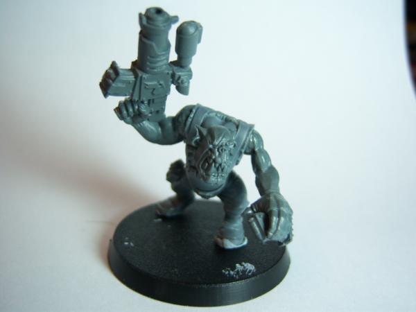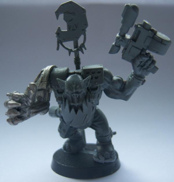 A Nob for my second boyz squad, fairly standard to be honest. The only real conversion was to reposition the slugga hand in a more gangsta pose. The body is from the Nobz box, the arms and accessories are from the Nob in the Boyz box. Surprisingly I found the bits from the Boyz nob were a little smaller then the bits from the Nobz box. This is him built minus boss pole, some bits are still blue tacked though.