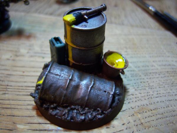 The gun will have a bunch of yellow on it, thats a given. What I can't decided is whether to paint the can or the trousers yellow? The trousers will be a lot easier but that will mean I paint the can in some kind of metal and I already have one with a metal can. A yellow can will look better if I can get it right but all the weathering that will be required is likely to go wrong, and when things go wrong I down tools and it can be months before I pick them up again. What do you guys think, take the risk or play it safe?